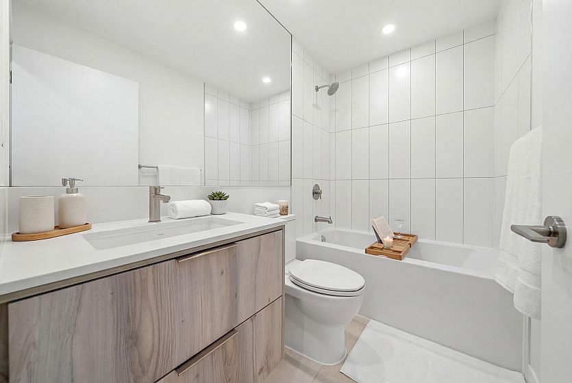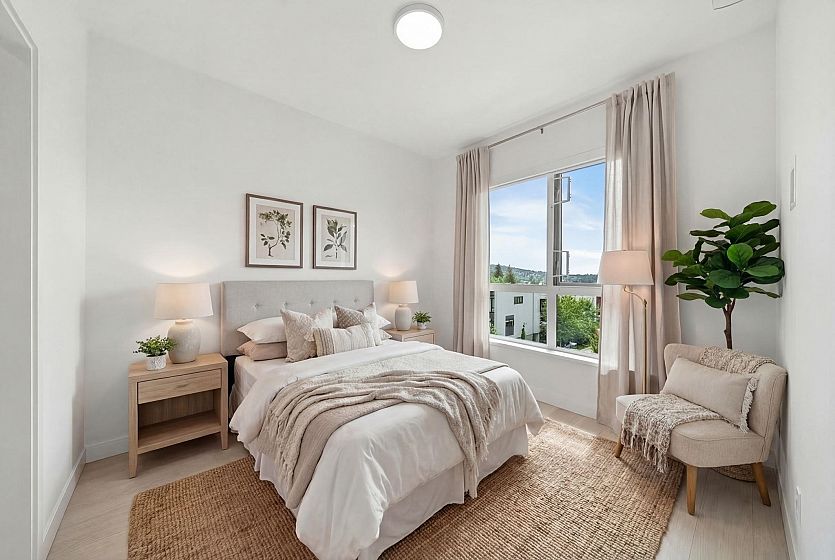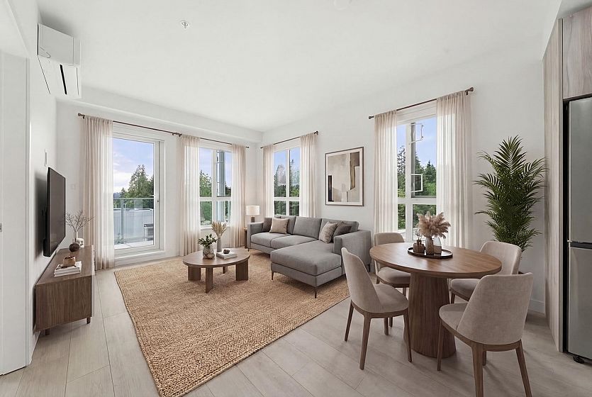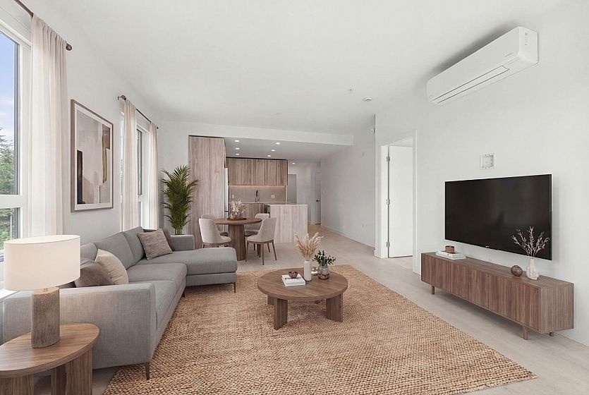 Welcome to North Vancouver’s newest development, Lupine Walk at Seymour Village. Surrounded by lush forest and natural beauty, this vibrant neighbourhood offers easy access to trails, nature, shops, transit, and just minutes to Deep Cove. This brand new southwest-facing corner unit features 2 bedrooms, 2 bathrooms, a den, and a bright, open layout with mountain and inlet views. Enjoy premium finishings, air conditioning in the living area and primary bedroom, and a functional floorplan with great bedroom separation for added privacy. Includes 2 parking stalls (1 with EV charger) and a storage locker. Residents have access to a fully equipped gym, rooftop terrace, social lounge, and pet wash station. Pet and rental friendly—ideal for homeowners or investors alike!