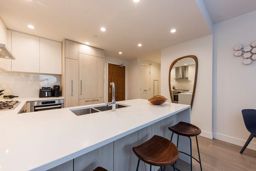 Absolutely stunning LoLo concrete 2-bedroom, 2-bathroom and office home on the quiet side of this boutique building, with fabulous city and Ocean views. Massive south-facing patio with over 600sq ft of sun-drenched space. Quiet, private and immaculate with extra height ceilings, air-con, spacious bedrooms, and open chef's kitchen with the finest appliances. Pets are welcome in this exceptionally well-maintained complex. Amazing location, walking distance to Shipyards, Seabus and the best restaurants. Includes underground parking, TWO storage lockers and plenty of visitor parking. This is a one of a kind home. These south-side patio suites do not come onto the market. Simply the best. Open Sat/Sun 2-4