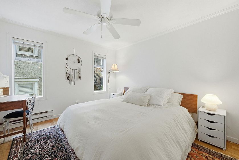 Oh the cuteness, the cats and the puppies! No pet restrictions here, so coming home from a stroll around the West End with your two puppies and languidly laying on the lounger, only to be snuggled by your 3 purring kitties, is definitely an option... Along with the cuteness you'll experience while living here, you will also love the 2 bedrooms - with just the right amount of separation - the cute balcony for your morning coffee and Wordle, the in suite laundry, the updated bathroom, the gas fire place and the ample charm!! This home is in a well run, 8 unit strata which is part of the Historic Thomas Fee Heritage house - A renowned architect from the late 1800s/early 1900s - It also boasts an underground parking spot and storage locker! Open this Saturday and Sunday from 2-4