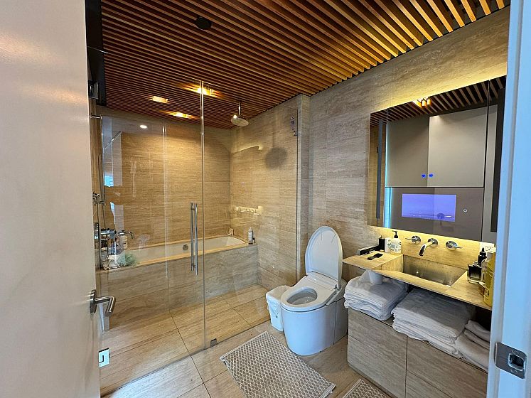 Spanning Coal Harbour, Stanley Park, and the Vancouver skyline, this residence offers one of the city’s most coveted 2-bedroom, 2-bathroom suites with incredible indoor/outdoor living space. Enjoy unobstructed panoramic views from every room, seamless floor-to-ceiling windows, 10' ceilings, elegant curved wood walls, integrated Miele appliances, and spa-inspired travertine bathrooms. Comfort is ensured with central A/C. Located in a premier building designed by world-renowned Japanese architect Kengo Kuma, residents enjoy exceptional amenities: 24-hour concierge, Japanese Moss Garden, Wine Tasting Room, Music Room, Fitness Centre, 25m indoor lap pool, Party Room, and an on-site Art Gallery. An unmatched opportunity to live in an architectural landmark. Call for your private viewing!
