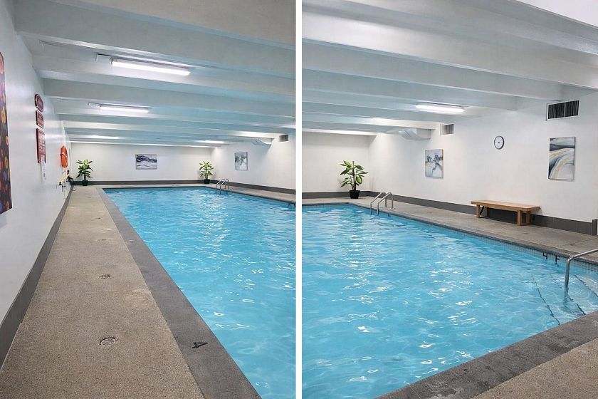 Bright 7th-floor corner unit in Woodcraft’s sought-after Pemberton building! This 834 sq. ft. home features 2 bedrooms, 1 full bathroom, & a large balcony. The upgraded kitchen offers modern appliances & stylish finishes. Additional updates include fresh paint, new doors, & the removal of the popcorn ceiling. Includes 1 parking stall & 1 storage locker. Located in a secure gated community with 24/7 security & outstanding resort-style amenities, including an indoor pool, hot tub, sauna, gym, and recreation facilities.Prime location close to scenic trails, Park Royal Shopping Centre, and Downtown Vancouver. The building has completed numerous major infrastructure upgrades, including roof & plumbing replacement, elevator modernization, and common area improvements all paid for by the Seller.