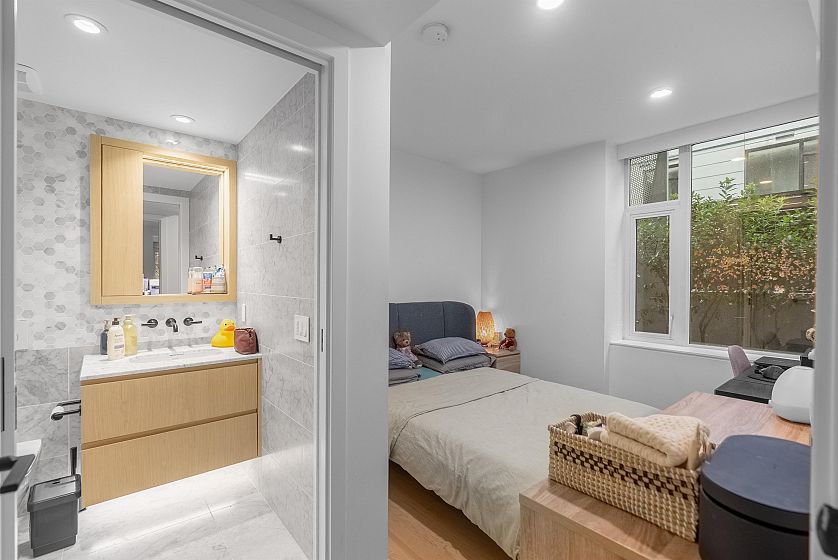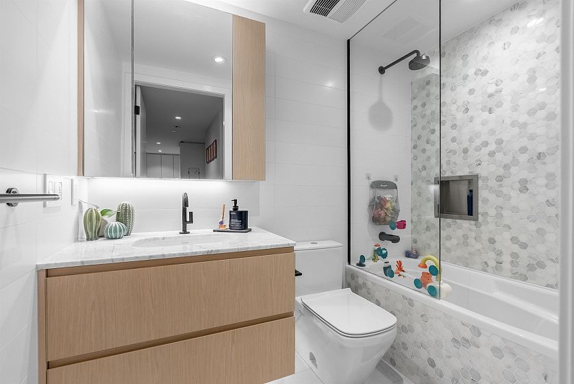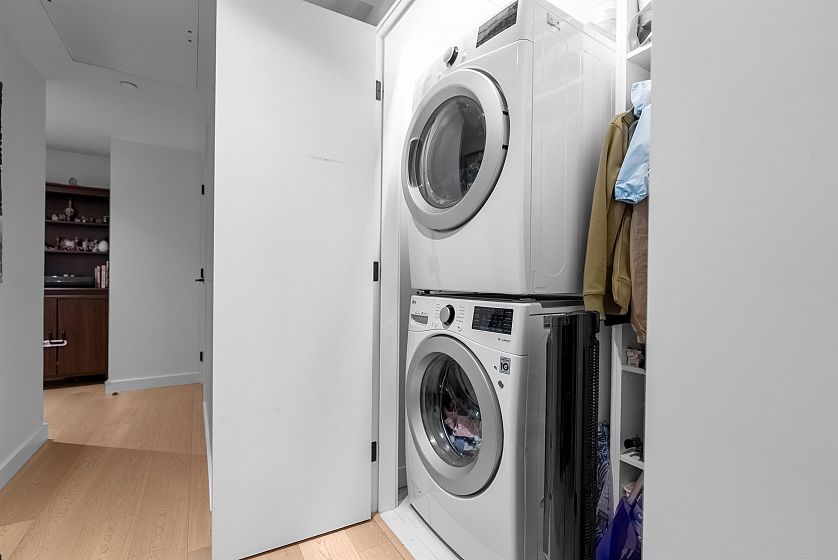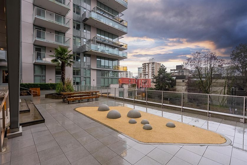Welcome to Mirabel by Marcon, a beautifully crafted residence by Henriquez Partners with interiors designed by award-winning Alda Pereira. This elegant 2-bedroom, 2-bathroom home features a rarely offered 200+ sq. ft. outdoor patio, perfect for entertaining or relaxing in style. The modern kitchen is equipped with high-end Bosch stainless steel appliances, a Sub-Zero refrigerator, and a Wolf gas cooktop, ideal for culinary enthusiasts. A high-efficiency heating and cooling system ensures year-round comfort. Just steps from boutique shops, trendy restaurants, and cafes. English Bay is a short stroll away, offering scenic seawall walks and beachfront living. Experience the perfect balance of urban sophistication and coastal charm. Open house March 22 Sun 2:00-4:00