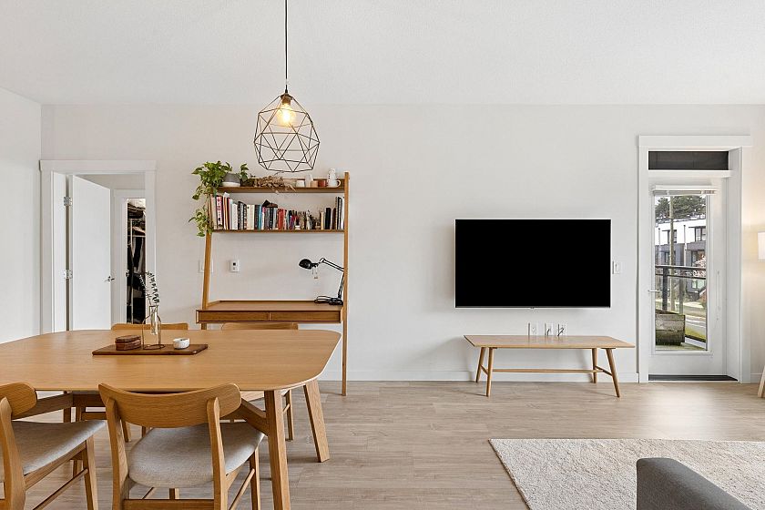 Welcome to your new home at Kindred! Situated in the heart of blossoming Moodyville, this LARGE MODERN 2 bed+ den/2 bath West Coast inspired home won't last long! A sought-after corner unit boasting a large+ spacious floorplan complimented by high ceilings, a chef-inspired kitchen with 5 burner gas range, softclose cabinetry, and radiant in-floor heating. Enjoy direct and east access to Moodyville Park and the Spirit Trail, walk to Lonsdale to shop and dine, and take advantage of doorstep access to major transit routes including the Seabus and R2 Rapidbus. Kindred offers a spacious social lounge with outdoor terrace, communal green space, and secure visitor parking. 2 parking+ 1 storage locker included. Pets and rentals welcome. OPEN HOUSE: SATURDAY MARCH 21st 2-4PM