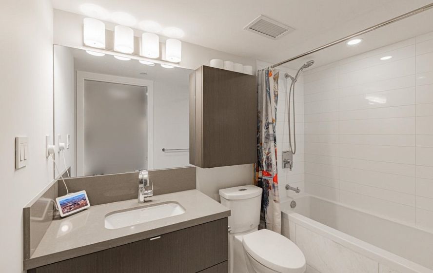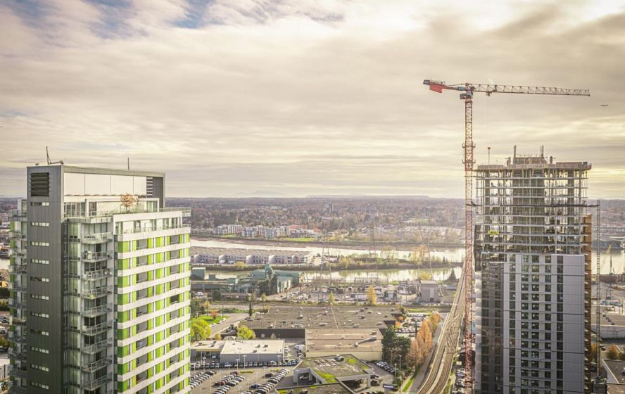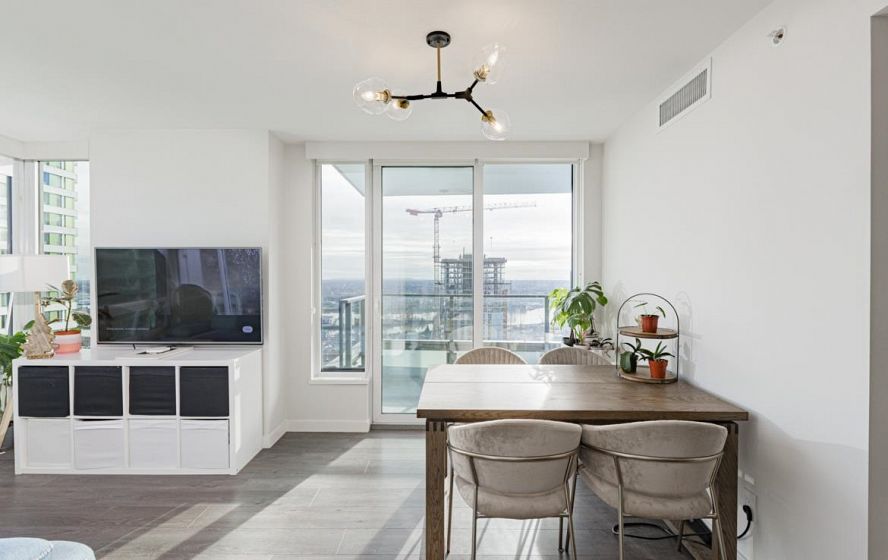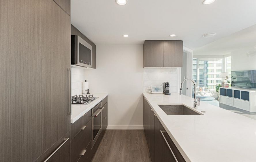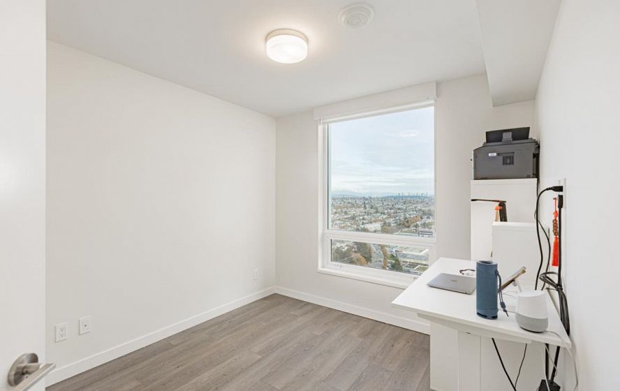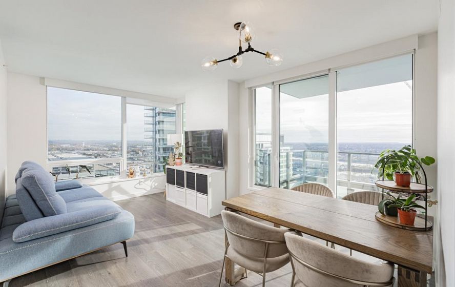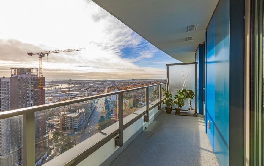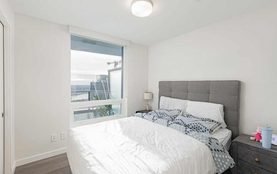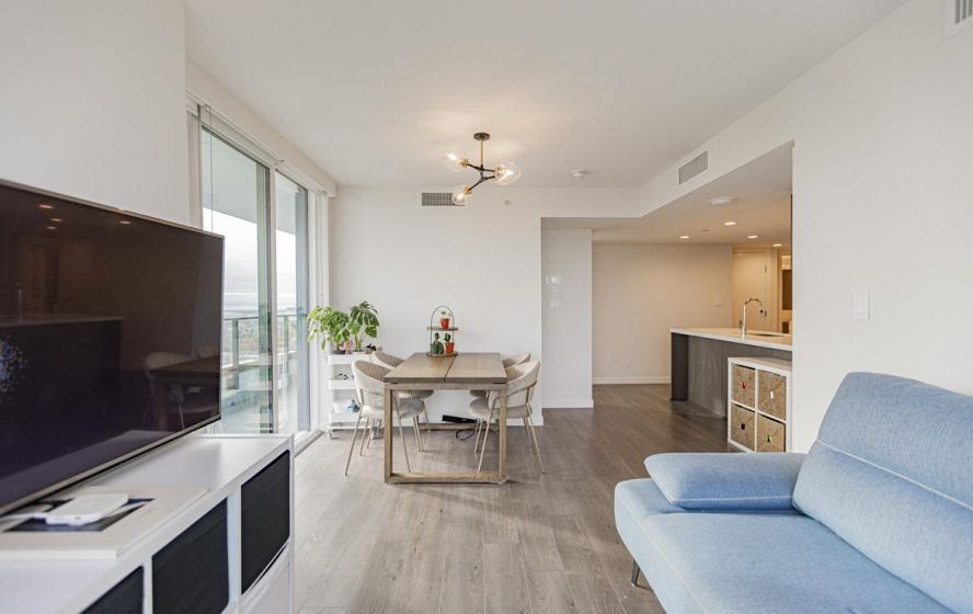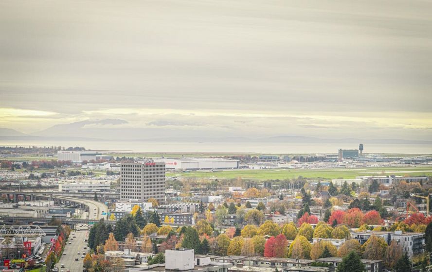 Welcome to this 751 Sq ft, 2BR 2 Bath open-concept home featuring beautiful southeast exposure views. Functional layout with a spacious kitchen, ample storage, plus well-sized bedrooms and central AC for year-round comfort. Upgraded smart switches, smart thermostat, and a smart lock for added convenience and modern living. Unbeatable location directly across from Marine Gateway Canada Line SkyTrain, providing quick access to Downtown Vancouver and minutes to the airport. Close to shopping, cinema, parks, and schools. Enjoy premium building amenities including 24-hour concierge, fully equipped gym, party room with kitchen, media/recreation rooms, and rooftop garden. Comes with 1 EV parking and 1 locker. BOOK your viewing today.