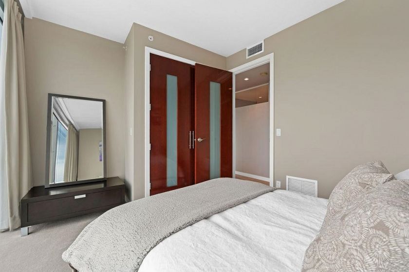 World Renowned One Wall Centre! Experience elevated living in this fully air conditioned residence featuring floor-to-ceiling windows and breathtaking, unobstructed SouthWest City, Water and Mountain VIEWS as far as the eye can see from every room. This highly sought-after floor plan offers a gourmet Bosch/Sub-Zero kitchen, built-in bar, 2 bedrooms; an over sized primary suite with an impressive Jacuzzi ensuite. Two secure parking as well as a private storage locker. The building offers premium hotel-style amenities including 24hr concierge, valet parking, room service, pool, and gym.