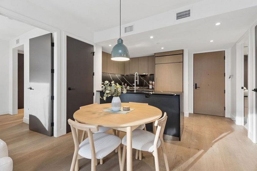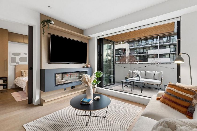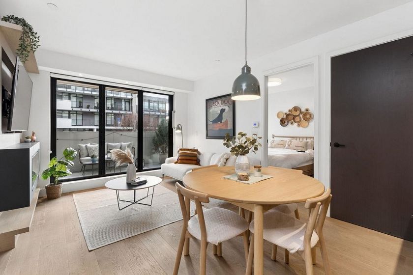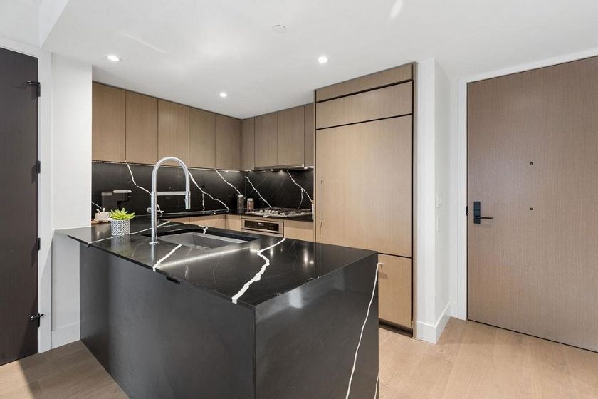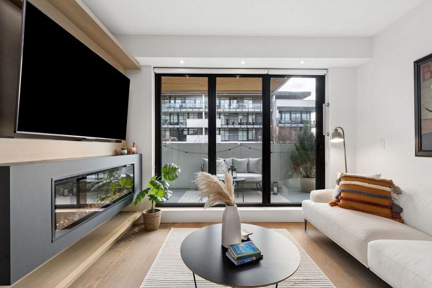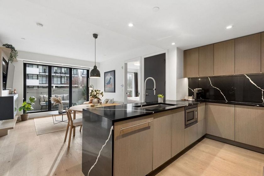 Welcome to this BRIGHT & REFINED 2-BED + DEN, 2-bath home near Riley Park in SHIFT by Aragon. Light-filled open concept layout w/ premium finishes, expansive windows & OVERSIZE BALCONY & AIR CONDITIONING. Chef-inspired kitchen w/ MONOGRAM APPLIANCES, sleek cabinetry, quartz counters, oversized island & counter seating. High quality engineered wood floors & CUSTOM MILLWORK throughout w/ ample storage. Seamlessly extend your living space w/ ACCORDION GLASS PATIO DOORS, opening to your PRIVATE COVERED BALCONY. Locally-minded, family friendly neighbourhood steps from Main St w/ fantastic amenities: Hillcrest Community Center, QE Park, Farmers’ Market, grocery stores, cafes, restaurants, and bike path. Includes 1 parking & locker.