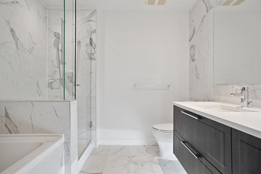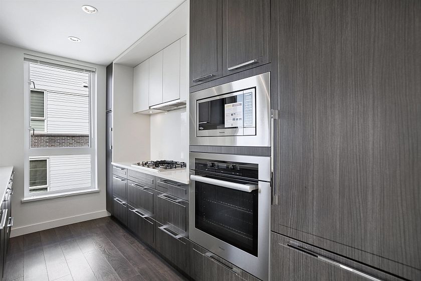CAMBRIA BY MOSAIC HOMES! Oversized, 1,219SF corner 2 bedroom and den home with wrap around balcony. The gourmet kitchen feature sleek, integrated appliances, custom floor to ceiling cabinetry and stone counters, and flows on durable laminate flooring into the open concept dining and living room. Appreciate large windows that invite natural light and peaceful tree-line views, over-height ceilings and a 225SF wrap around patio - perfect for morning coffees and evening wine. This functional home features 2 spacious, separated bedrooms for ultimate privacy, a den/office and a primary suite with 5 piece ensuite and walk in closet. Both bathrooms feature deep soaker tubs, spacious vanities and floor to ceiling tiling. This home includes 2 parking & 1 storage. *OPEN HOUSE: SAT MARCH 28 12-2PM*
