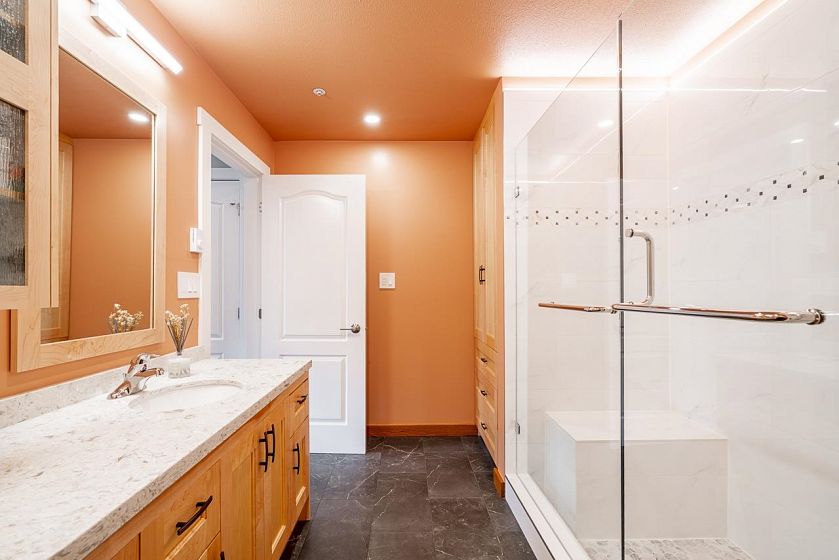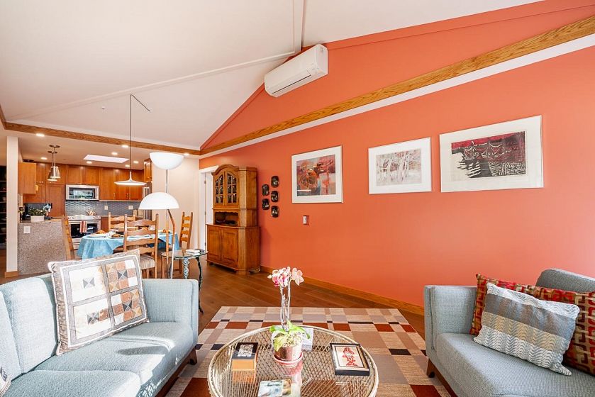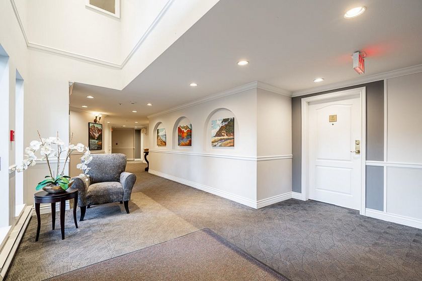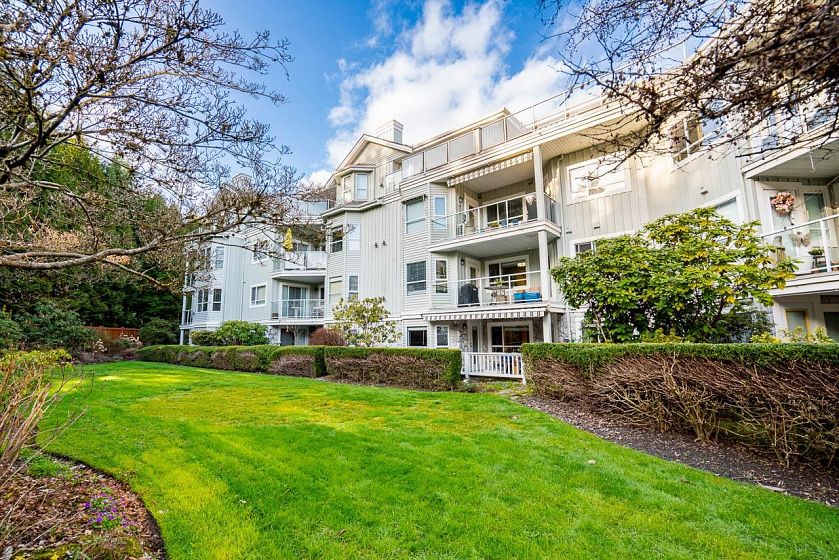 Welcome home! This extensively renovated 2 bedroom + den, 2 full bathroom PENTHOUSE is spread over almost 1,500 sq.ft. One level living with mid century modern flair. Vaulted ceilings with skylights let in natural light. Enjoy indoor/outdoor viewing of the 13th hole at Northlands. Renovations include hardwood flooring, completely updated kitchen, LED lighting, gas fireplace and Heat Pump (cooling and warming) and more, all with PERMITS. No compromise on space for downsizers. PETS WELCOME (2 cats or dogs allowed). 2 side by side parking spots close to the elevator & 1 storage locker. It's all about the lifestyle. Enjoy the golf course & Parkgate Park next door, the slopes of Mt. Seymour, the Baden Powell trail, the many amenities at Parkgate Village and all that Deep Cove has to offer.