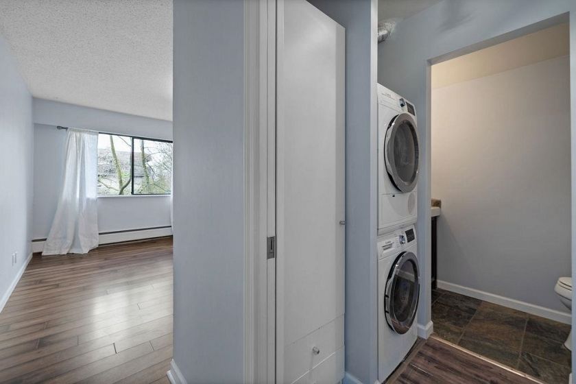 Welcome to Cragmont Place — a tastefully updated 2 bed/1.5 bath corner home centrally located in Lower Lonsdale. This bright, spacious suite features an open layout with generous living areas, updated bathrooms, and a house-sized kitchen with large island and stainless steel appliances. Featuring in-suite washer/dryer, screens on all windows and doors, and over 1000sqft of living space PLUS a private 75 sq. ft. balcony overlooking the quiet, tree-lined courtyard, this home is truly a peaceful retreat in the heart of Lolo. Located in one of the North Shore's most walkable and vibrant neighbourhoods, you're just steps to Lonsdale Quay, the waterfront, the Shipyards, cafés, parks, restaurants, shopping, and the SeaBus to downtown Vancouver. Pets welcome