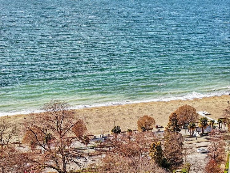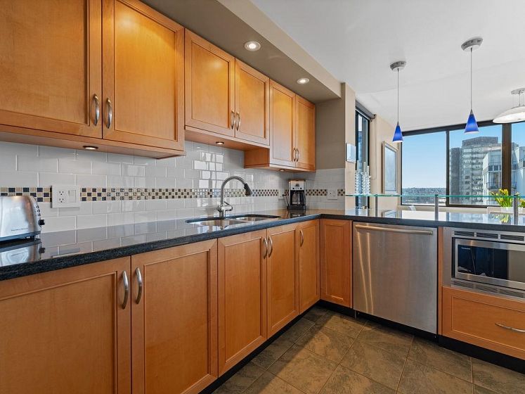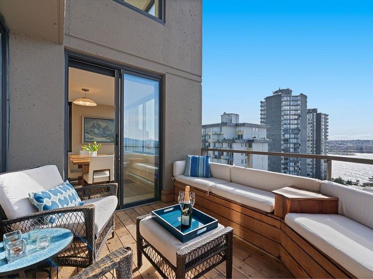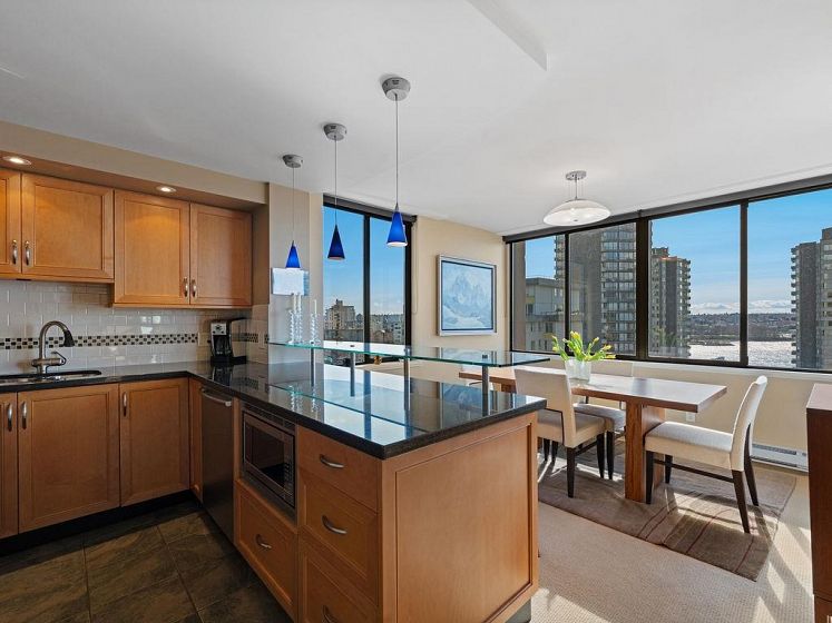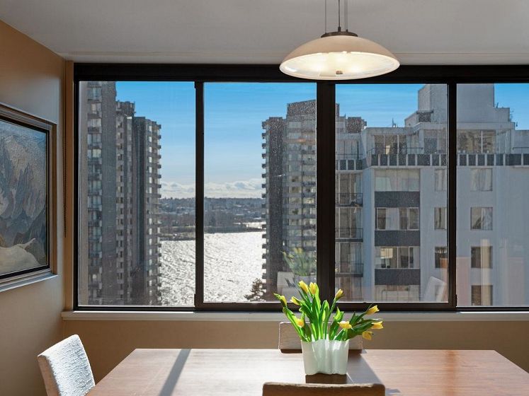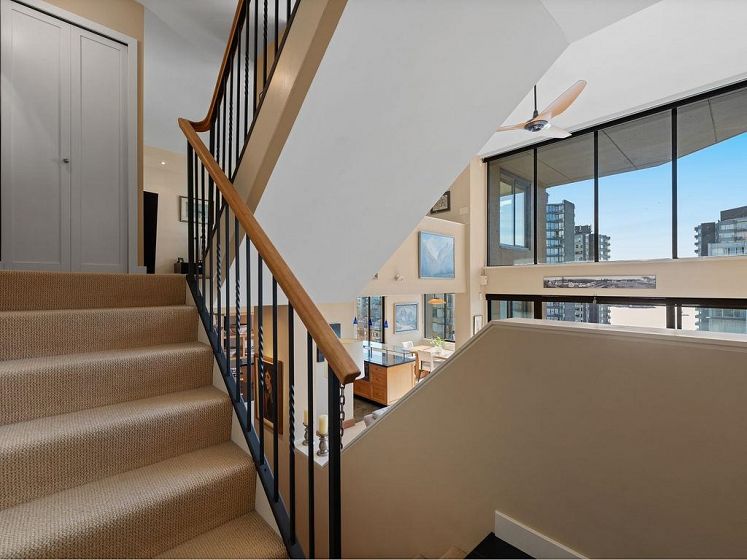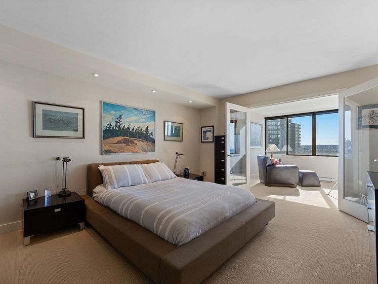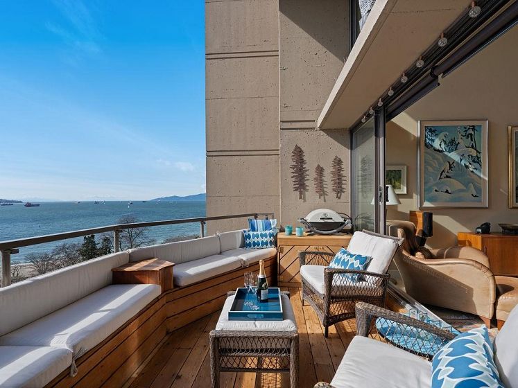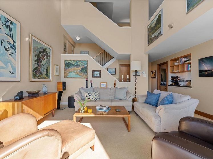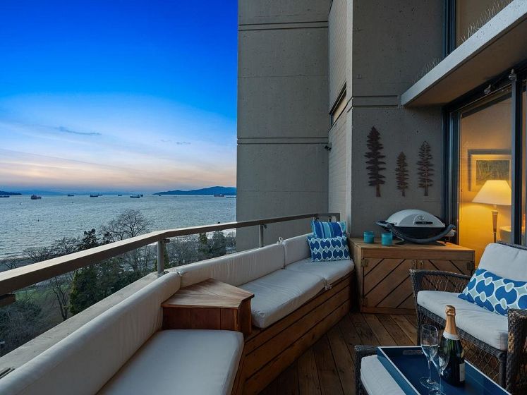THIS VIEW! One of the best vantage points in the city, with unforgettable sunsets and the mesmerizing waters of English Bay showcased right from your living room. Located in the iconic Alexandra Park, a boutique concrete building in the West End, this one-of-a-kind, two-level residence captures the very best of Vancouver. Soaring 16-ft cathedral ceilings and floor-to-ceiling windows fill the home with natural light, while the open-concept living and dining area flows to a private ocean-view balcony. Upstairs, the loft-style primary suite is a peaceful retreat, while a separate flex space can easily function as a second office, library, or quiet sitting area. Pet-friendly, with 2 parking and 1 locker. Perfectly positioned just half a block from English Bay.