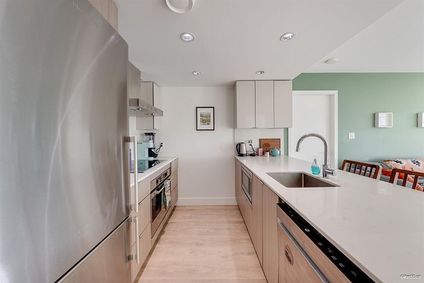 Spacious and functional 2-bed+Den in the heart of Olympic Village. This bright, features floor-to ceiling windows, German wide-plank flooring, and sunny southwest exposure. This gourmet kitchen is equipped with high-gloss cabinetry, an induction cooktop, and stainless steel appliances. This generous primary suite includes a spa-inspired ensuite with double sinks, ample storage, and a relaxing soaker tube. Enjoy outdoor living on the sun-filled balcony, perfect for BBQs, Epic at West amenities include a fitness centre,8,500 sq.ft. rooftop patio, concierge, clubhouse, and dog spa. Steps to the Canada Line seawall, restaurants, and shops. Parking and storage included. Prime location to offer great opportunity for to occupy. Also great investment with high rental income. Call for details.