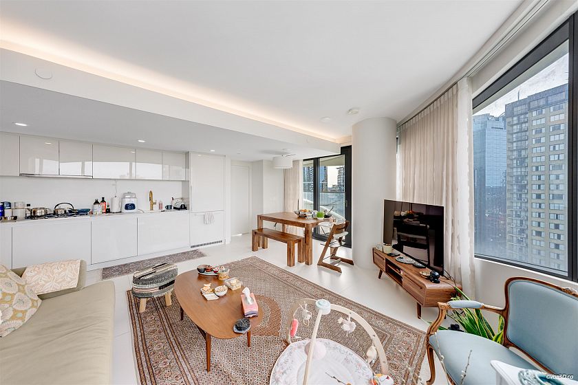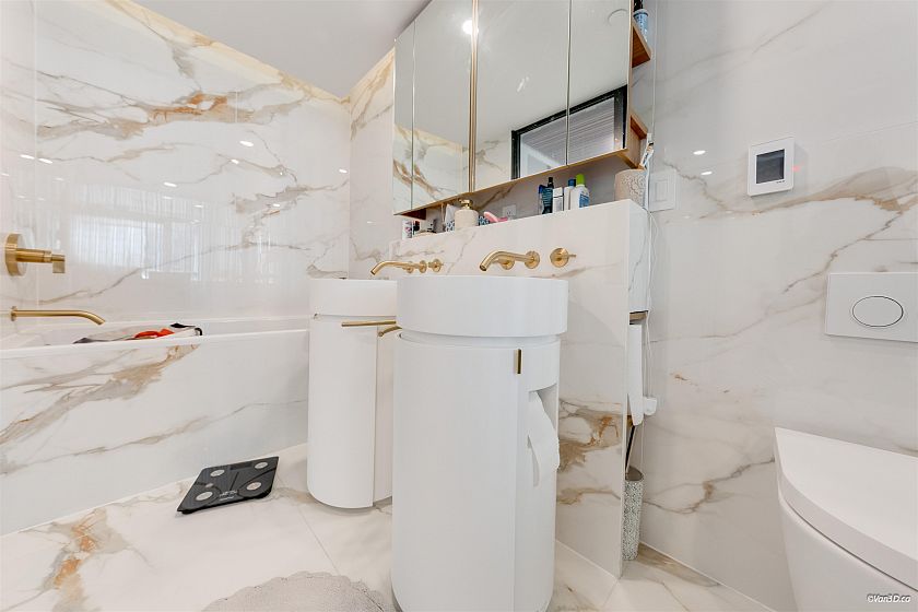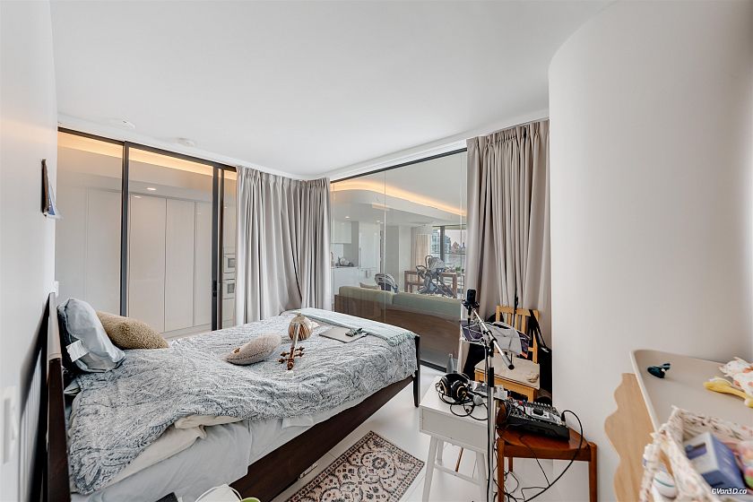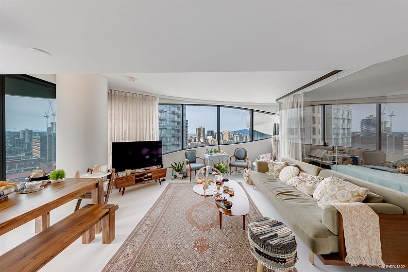 Experience The Butterfly, Vancouver’s architectural icon by Bing Thom and Westbank. This 1,065 sq. ft., 2-bedroom, 2-bath south-facing home soars above the city with unobstructed English Bay views and bright, sun-filled interiors. Built to LEED Gold standards, the residence showcases a gourmet kitchen with Miele appliances, Sub-Zero wine cooler, steam oven, and meticulously chosen finishes. Thoughtful details include a smart A/C cooling system and advanced waste-collection elevator. Residents enjoy exclusive amenities such as 24-hour concierge, indoor pool and spa, fitness centre, and social lounge. Perfectly positioned in the lively West End, steps to boutiques, cafés, Stanley Park, and transit.