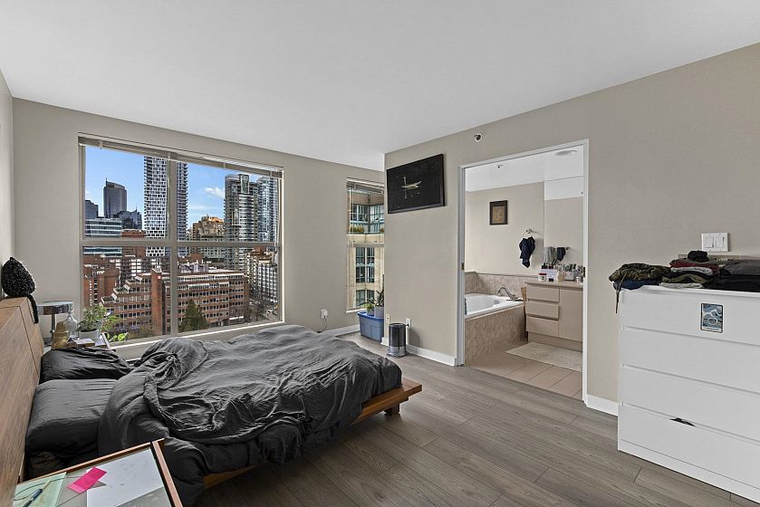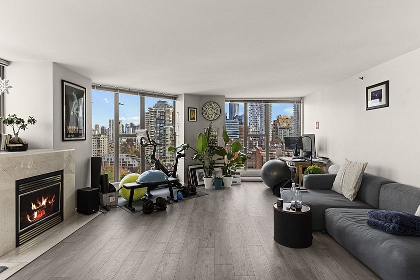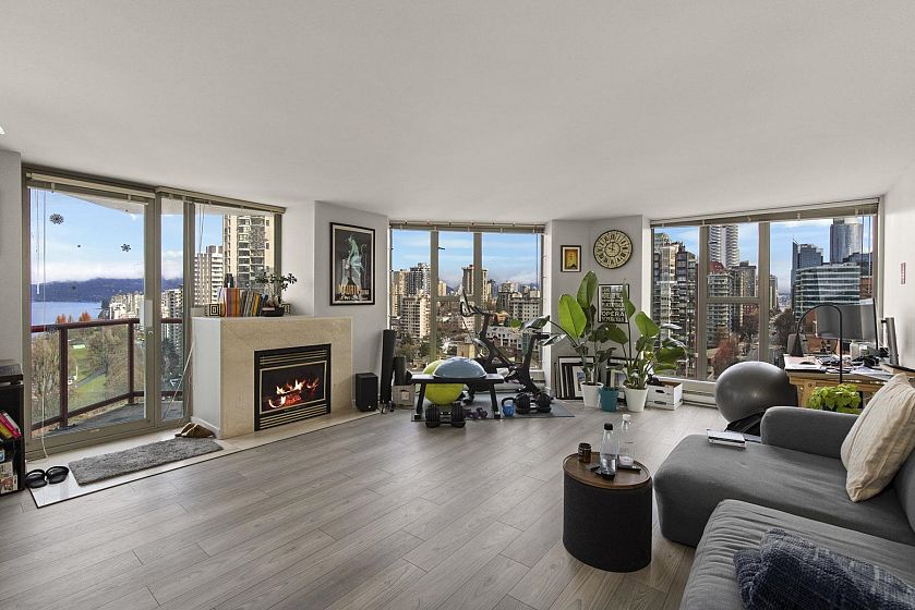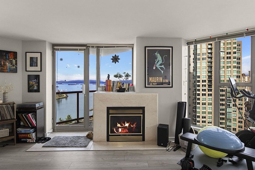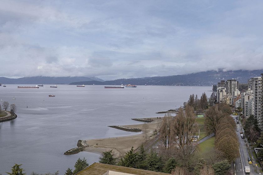 WATERFRONT and beautiful ENGLISH BAY VIEWS, a resort style living at a great waterfront location! This spacious 1338 sqft 2-bdrm/2-bthrm city home is in an amazing location just minutes from the seawall, beach, Stanley Park, restaurants, Fresh Street Market, shops + transit. Terrific floorplan w large living + dining room, spacious bedrooms, gas fireplace, laminate flooring, insuite laundry. Amenities include 24 hours concierge, swimming pool, hot tub, gym, sauna, squash court and multi-purpose room! Unit comes with 2 parking stalls and 1 storage locker! Sorry - no pets. Rentals allowed - min 3 months. Updated elevators & paid special levy for windows replacement.