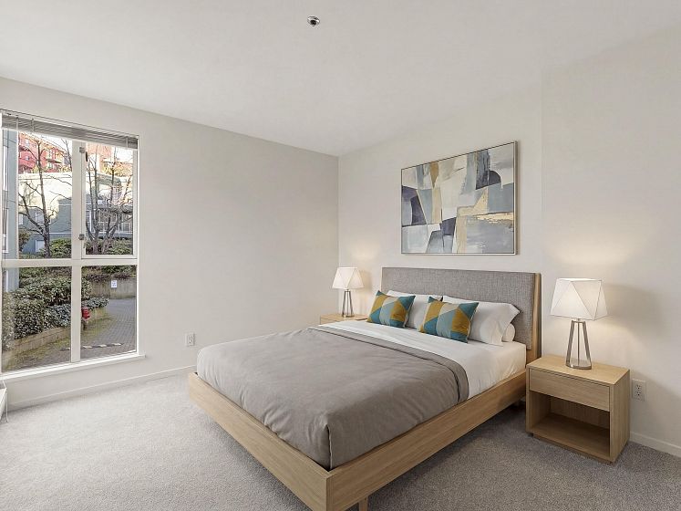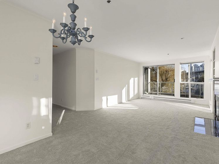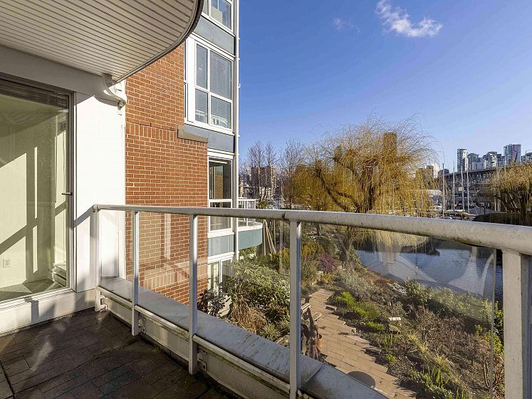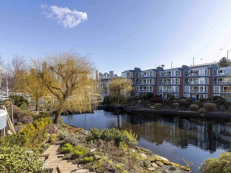 Scenic, vibrant, convenient - the ultimate waterfront lifestyle at the Lagoons in False Creek! Bright and beautifully updated two bedroom two bath home, with water views, spacious layout with large living, dining and primary suite. Loads of natural light overlooking amazing nature scaping around the lagoon and waterfall. Freshly painted, new carpets, and updated ensuite bathroom. The prepaid lease has been extended to 2066 which means long-term peace of mind. Two parking stalls included in this central location along with a spacious storage locker. Walk out your door to Granville Island, the seawall, shops, and restaurants. Waterfront living at its best!