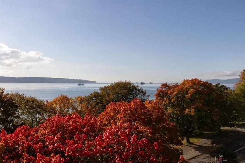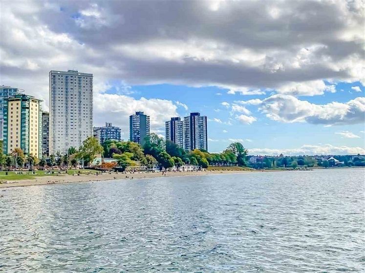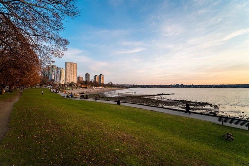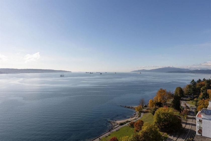 VIEW! VIEW! VIEW! Beach Ave. All views of ocean & two view balconies at prestigious Huntington West. Highest quality refinishing, 2 parking, urban sophistication at its best. West of Denman, ideal location steps to Stanley Park & Seawall. Amazing sunsets. Rock solid construction. In suite laundry & open kitchen. This concrete complex has a solid reputation for quality in the West End. The building has good management and has always taken care of all major issues. Features include: a stunning 360 degree oceanfront rooftop deck & supersized whirlpool & exercise area. Live the good life of English Bay & the coffee shops of Denman Street. Hurry! This one won't last.