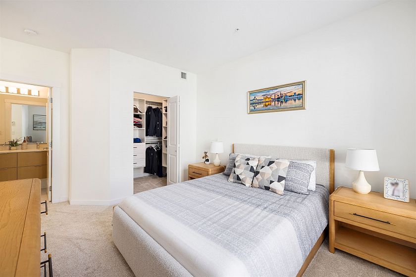 Welcome to West Quay by Polygon in vibrant Lower Lonsdale, one of North Vancouver’s most sought-after communities. This beautifully updated 980sq ft, 2-bed 2-bath home offers a thoughtful layout with custom closets, & new carpeting in bedrooms. The spacious primary features a walk-in closet & a spa-inspired ensuite complete w/ double vanities, quartz counters, & a frameless glass shower. Enjoy 9’ ceilings & bright, open-concept living centered around an oversized kitchen w/ a large island, gas range, quartz countertops, & SS appliances. This west-facing suite is filled w/ natural light & located in the inner courtyard. Just steps to the Seabus, Lonsdale Quay, parks, transit, cafés, shops & restaurants. Amenities include a gym & a gardens terrace. Pet-friendly. Include 1 parking & storage.