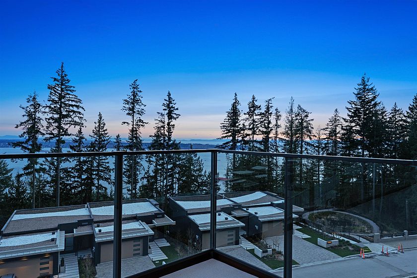 Panoramic Ocean & City VIEWS from the Hawksley, Beedie's latest development in West Vancouver. This 2 bed, den & 2 baths home offers over 1,284SF of thoughtfully designed interior space plus a huge 312SF balcony with breath-taking views. The open-concept layout features spacious living & dining areas with sleek, contemporary finishes throughout. Enjoy seamless indoor-outdoor living w/floor-to-ceiling windows & 9' ceilings, perfect for relaxing or entertaining. Includes 2 parking & a storage locker. Residents have access to premium amenities including a fitness centre, bike repair station, pet wash & secure parcel room. Surrounded by nature yet close to everyday conveniences, this is a rare opportunity in a highly sought-after West Vancouver community at an extremely attractive price!