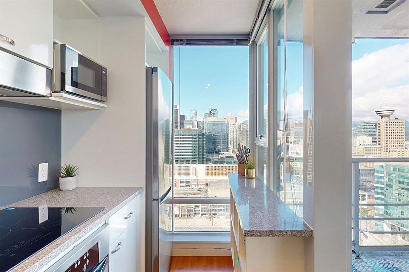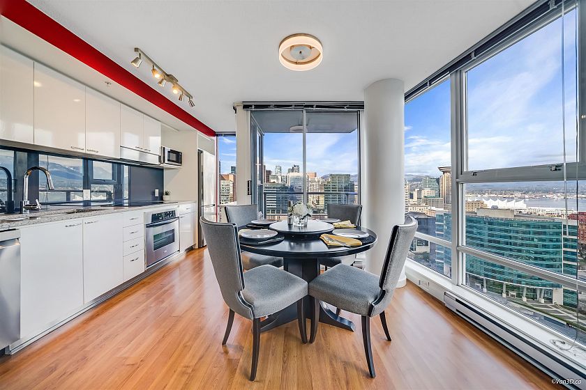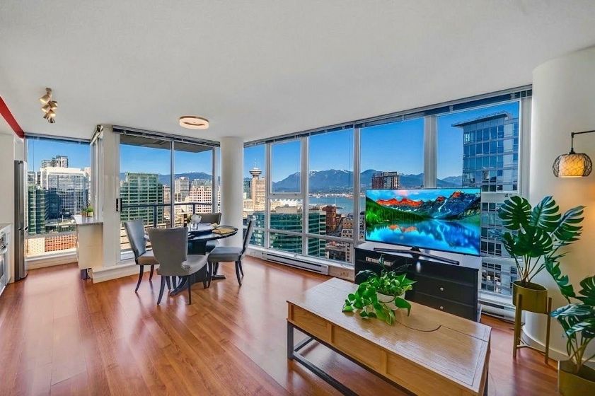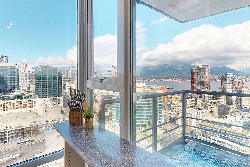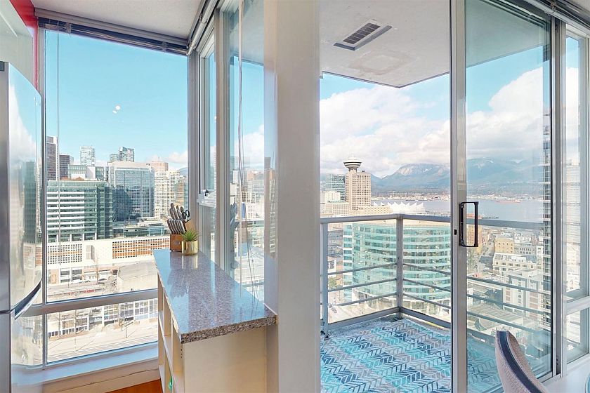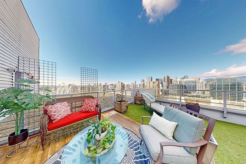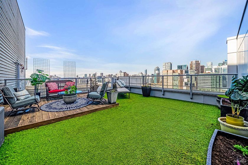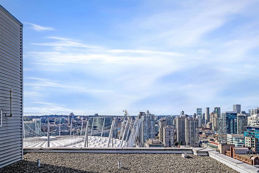 STUNNING COZY PENTHOUSE w/PRIVATE 450sqft ROOFTOP PATIO, an entertainer’s dream! This spacious NW corner suite perched on the 31st flr offers spectacular views of Canada Place, the Ocean & North Shore Mountains. Thoughtfully designed w/2 separated bdrs for privacy, floor-to-ceiling windows & abundant natural light. Recently renovated w/new stone kitchen/bathroom countertops, S/S appliances & modern light fixtures, in-suite storage & laundry. Enjoy building amenities inc. CONCIERGE SERVICE, indoor swimming pool, hot tub, exercise rm & party rm! Conveniently located directly above Costco, steps to SkyTrain, City Market, Rogers Arena, BC Place & more (walk score 98). 1 parking incl. Pets/rentals ok PERFECT FOR FIFA WORLD CUP! Easy to show. Call today! OPEN HOUSE APR 26, SUN 2-4pm