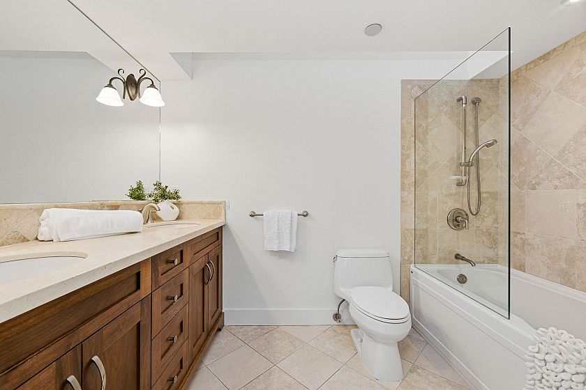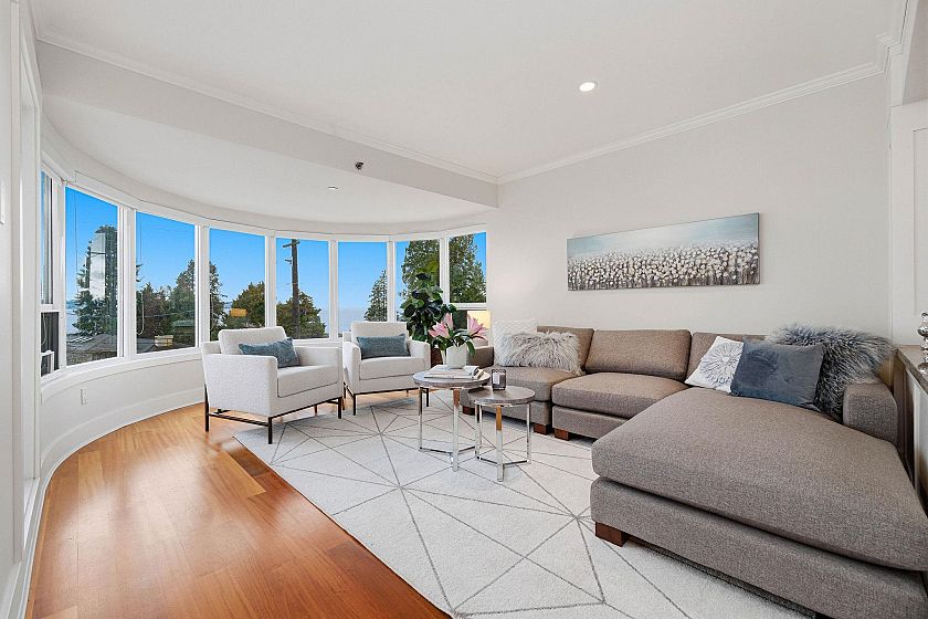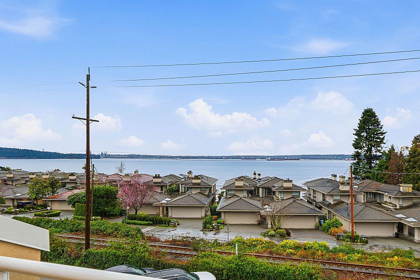 Bright, beautifully updated Dundarave residence with ocean views just steps to the Seawall and village shops. Expansive south-facing windows and skylights fill the home with natural light, highlighting Brazilian cherry hardwood floors and a comfortable, open layout. The kitchen offers granite counters, quality cabinetry, and premium appliances. The spacious primary suite includes a well-appointed ensuite with heated floors, while a flexible second bedroom suits guests or a home office. Enjoy a partially covered balcony with water views—ideal for morning coffee or evening sunsets. A well-maintained home in a highly walkable seaside setting.