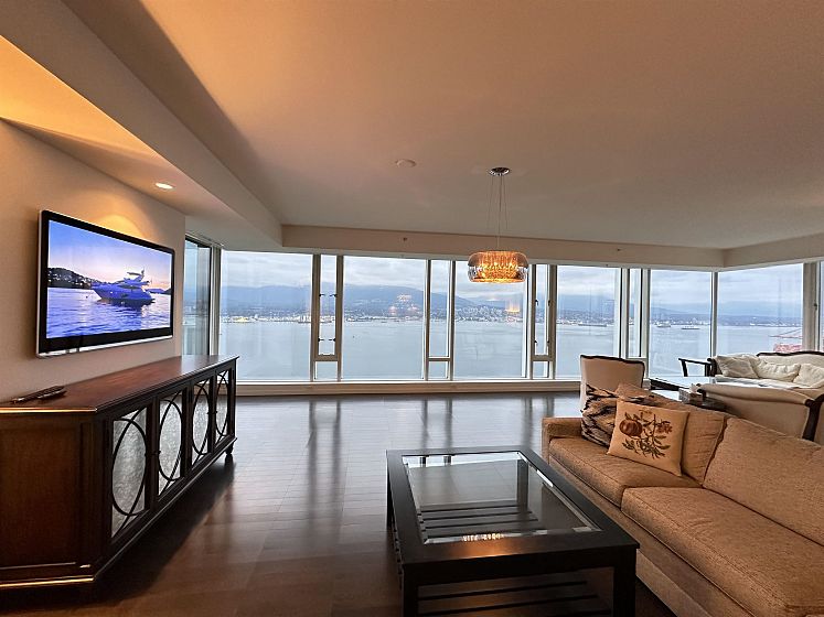 Exclusive waterfront living with unobstructed views of Coal Harbour, Stanley Park, Lions Gate, Burrard Inlet and Mountains.The Fairmont Pacific Rim Residences together with the 5 star Fairmont Pacific Rim Hotel offer quality in living and unparalleled services including Fitness Centre, Out door Pool/Hot Tub, Spa, Room Service,Fine dining. This Impeccably first owner well-maintained units perfect to enjoy the stunning view with full corner unit privacy . The walk-out terrace with an outdoor gas fireplace is perfect to enjoy the view from fully private Master bedroom. Corner unit comes with f-c windows, open layout with dream island kitchen facing Harbour & Mountain View, top of the line original Miele/Sub Zero appliances including wine fridge Private storage room next tothe parking stalls