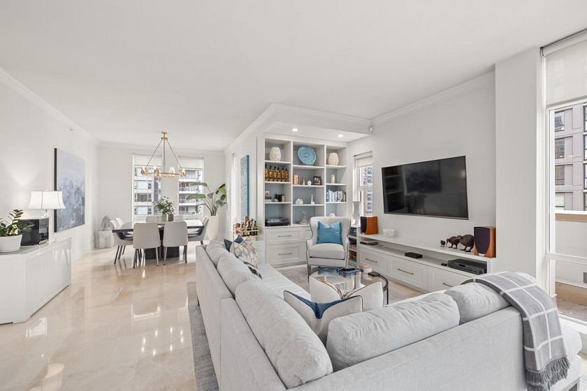 Character & history meet modern design at the Grace in the best part of Yaletown. With so many cookie cutter condos available, this special residence stands out. The owners created a home to share with friends & family with an extensive renovation incorporating timeless, luxurious finishes throughout. Almost 1900sf of living space is both intimate & generous in scale. Main living area is open plan with south & west exposure. Deluxe primary bedroom with 6pc ensuite with separation of guest bedroom with ensuite. Den off living room. Very private with just 2 units per floor, 24/7 concierge, & biometric access, geothermal, & A/C. The Grace offers resort style amenities including indoor/outdoor pool, shared garden terrace with BBQ, sauna, & gym. 2 s/s parking + large locker. ,EV charging avail