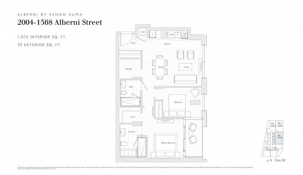Architectural distinction defines Alberni by Kengo Kuma. Designed by globally celebrated architect Kengo Kuma and brought to life by Westbank, this 2 Bed, 2 Bath residence offers 1,072 Sq. Ft. of interior space plus 70 Sq. Ft. of outdoor living. A premium Miele appliance package anchors the kitchen, while refined Japanese inspired detailing and floor-to-ceiling windows capture striking city & ocean views. Residents benefit from resort style amenities including 24-hour concierge, a state of the art fitness centre, indoor lap pool, music room, and private wine tasting room. Located on Alberni Street near high-end boutiques, notable restaurants, Stanley Park, and Coal Harbour, this home exemplifies sophisticated West Coast living!
