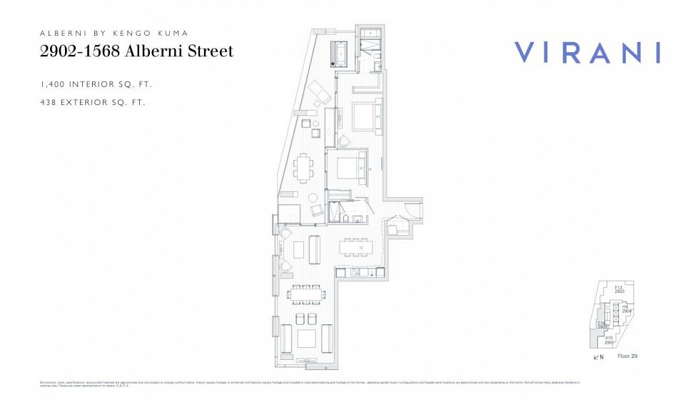 Elevated design meets refined living at Alberni by Kengo Kuma. Designed by internationally acclaimed architect Kengo Kuma and developed by Westbank, this 2 Bed, 2 Bath residence offers 1400 Sq. Ft. of indoor space with a beautifully appointed 438 Sq. Ft. Japanese inspired outdoor oasis complete with soaker tub. A high-end Miele appliance package pairs with carefully curated Japanese design features and expansive floor-to-ceiling windows, showcasing views of the ocean, mountains, and city skyline. Residents enjoy access to resort-style amenities including 24-hour concierge service, state of the art fitness centre, indoor lap pool, music room, and private wine tasting room. Perfectly positioned on Alberni Street, just moments to luxury shopping, fine dining, Stanley Park, and Coal Harbour.