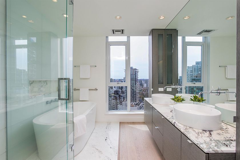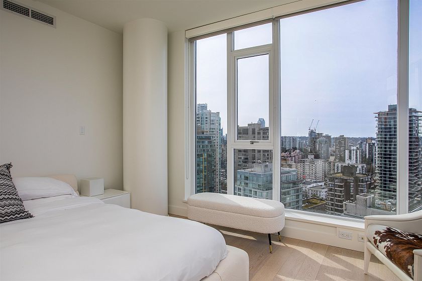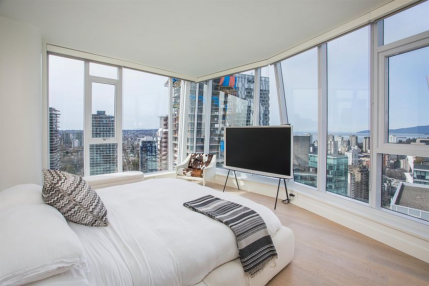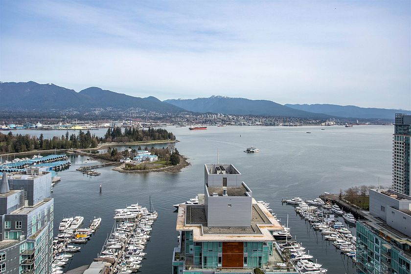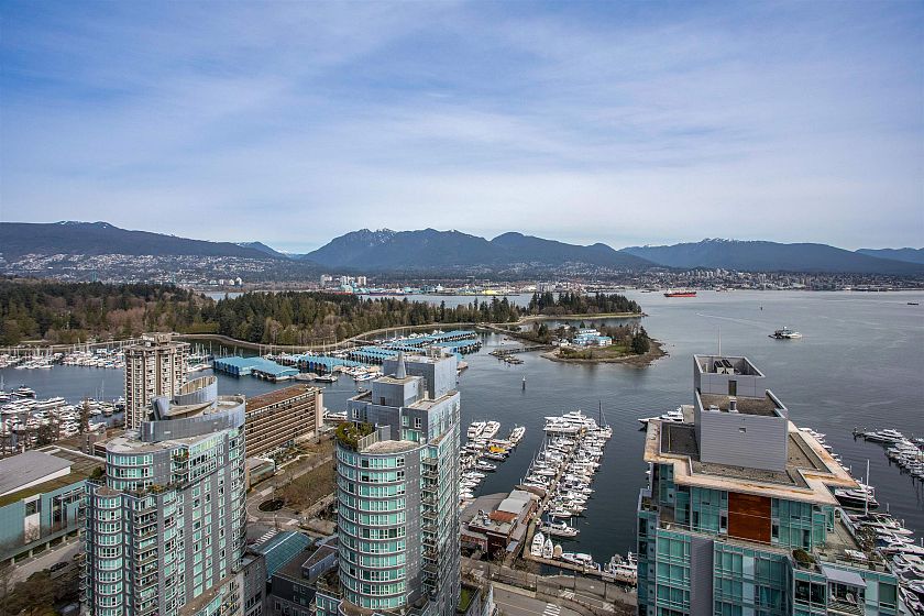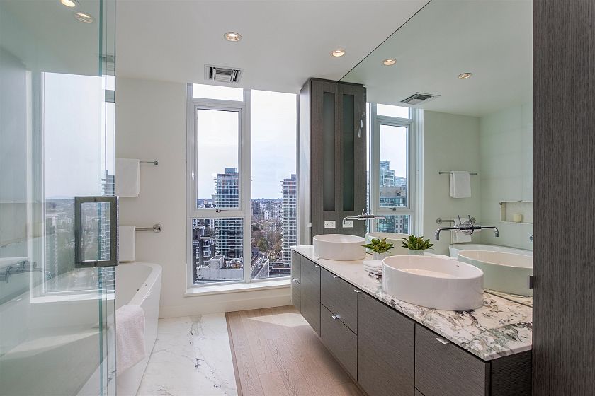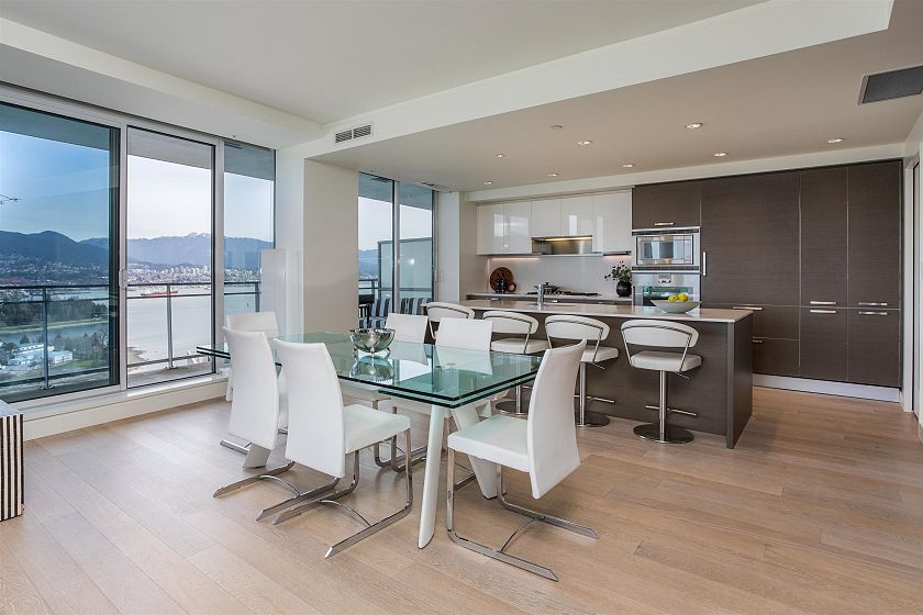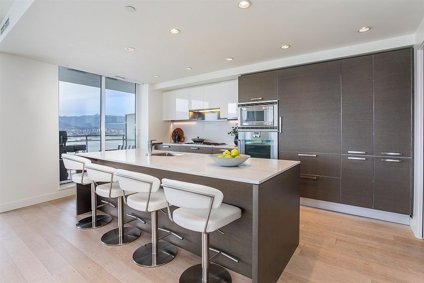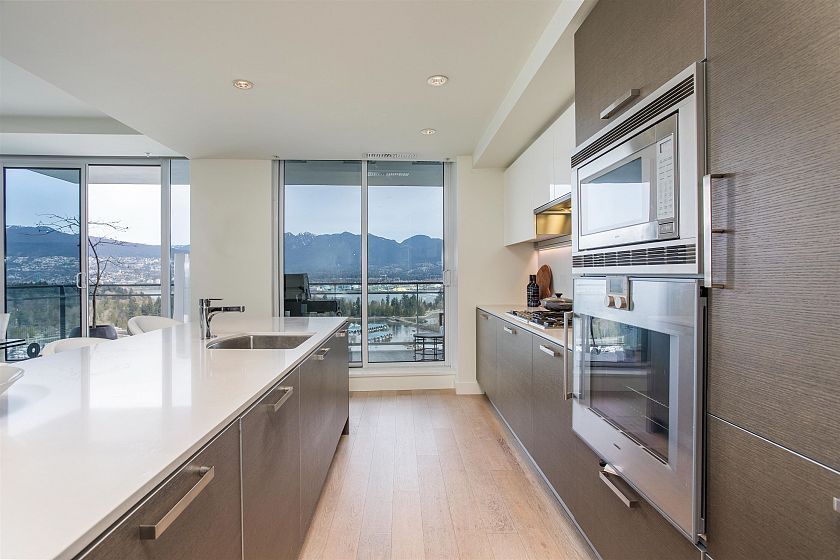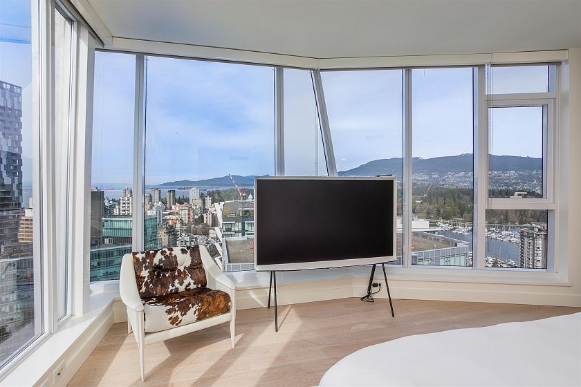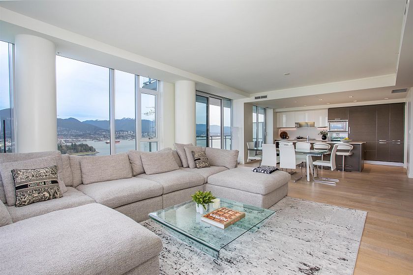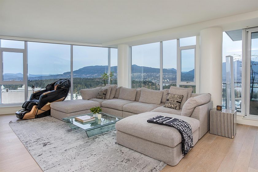 Exceptional NW corner residence at West Pender Place features panoramic views of the Ocean, Mountains, Burrard Inlet, Stanley Park, and English Bay. This spacious 2,051 sq ft, 2-bedroom-plus-den home provides scale, light, and versatility, with the den suitable as a third bedroom. Over-height ceilings and floor-to-ceiling windows enhance the feeling of space and showcase stunning views. The kitchen is equipped with Dada Cucine cabinets, a large centre island, and Gaggenau and Sub-Zero appliances. An expansive covered balcony with sweeping views, an elegant powder room, laundry room, walk-in pantry, two private garages, and a storage room are among the many features. Amenities include a pool, fitness centre, guest suite, and 24/7 concierge. Located just steps from the Seawall, Stanley Park.