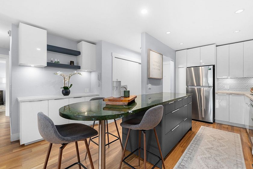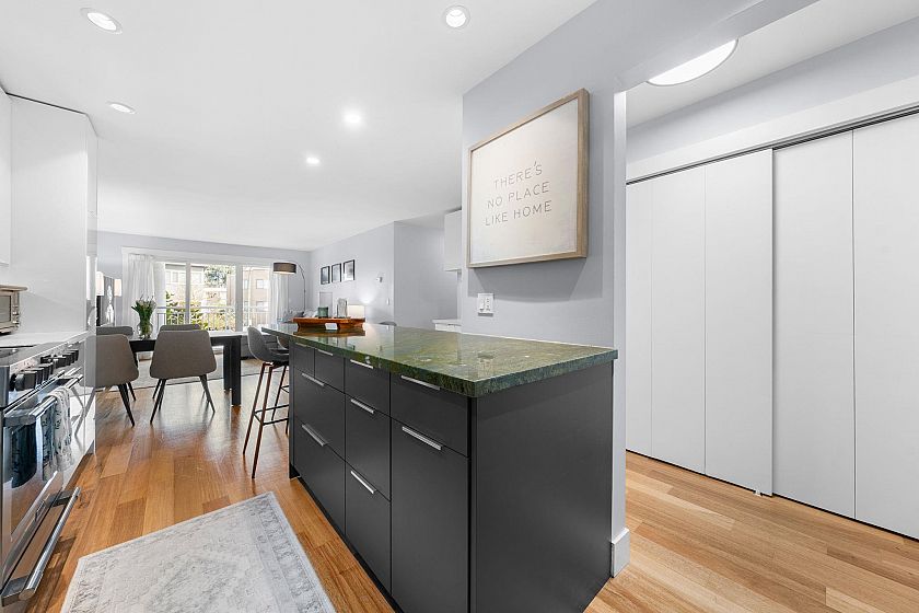 PRICE REDUCTION + TOTAL RENOVATION + SHOWSTOPPER KITCHEN? LOOK NO FURTHER! A rare opportunity to own this soulful and stunning sanctuary. This Fairview 2-bed, 2-bath condo sits between Kitsilano, Mount Pleasant & False Creek—offering the best of all three. Every wall, floor & surface is beautifully updated and turn-key ready! Generous rooms, a showstopper chef's kitchen with striking marble peninsula, and a sun-drenched, north-facing veranda spanning the full width of the suite—perfect for entertaining! Refinished floors & updated bathrooms, plus underground parking, bike room, storage locker & abundant built-ins, all in a well-maintained boutique building. Excellent transit & easy downtown access. Make Fairview home! OPEN HOUSES: Sat, Apr 25 @ 2–4pm | Sun, Apr 26 @ 1–2:45pm