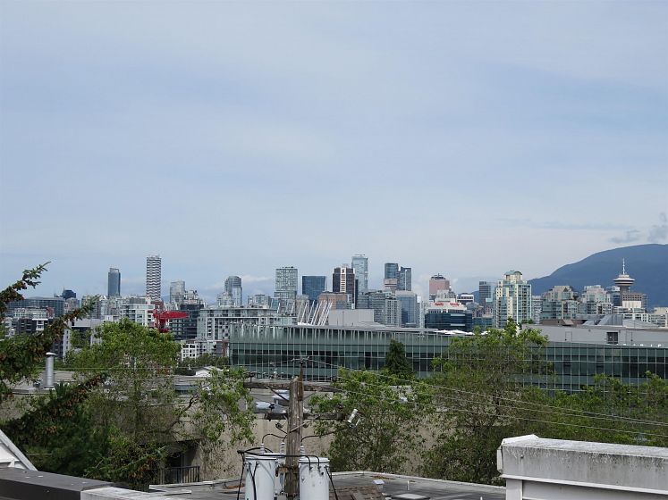 Original owner! Well laid-out 2 BR NW corner unit with a bright open plan Kitchen. This allows lots of natural light into the Kitchen from the Dining Room windows. Re-painted cabinets, newer light fixture & vinyl flooring in the Kitchen. Laminate flooring in the Living Room, Dining Room and Hall. Newer carpets in BRs. Primary BR features a walk-thru closet to a 2-piece Ensuite. 2 parking stalls! Common area rooftop deck. Building upgrades include balcony renewal, epoxy application to plumbing service lines, electrical work & updated Depreciation Report. Walking distance to future Great Northern Way-Emily Carr ALRT Station on the Millenium Line. More transit options on Broadway. Vancouver Community College nearby.
