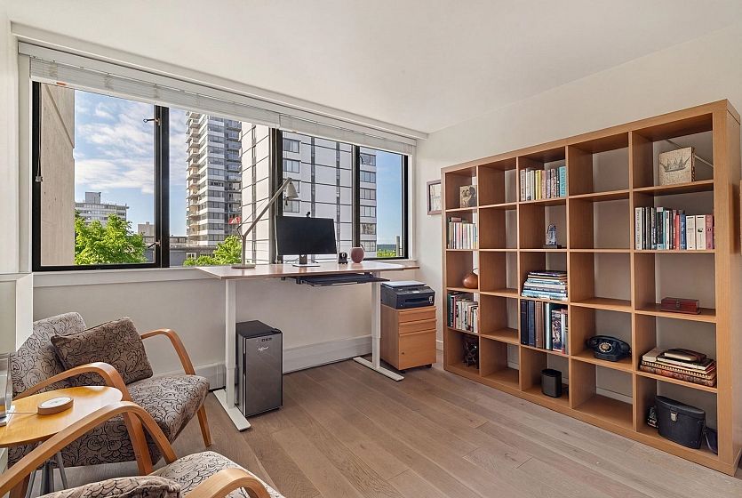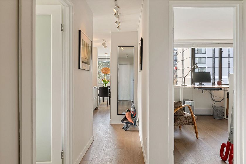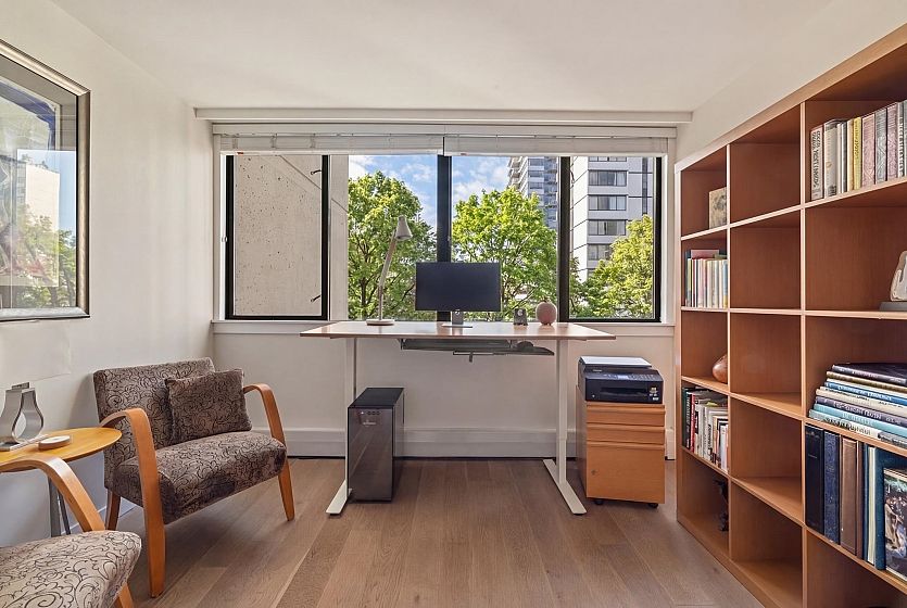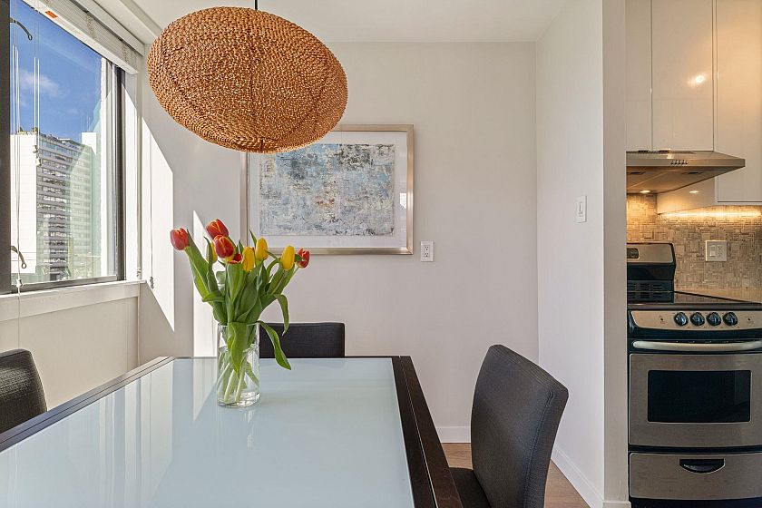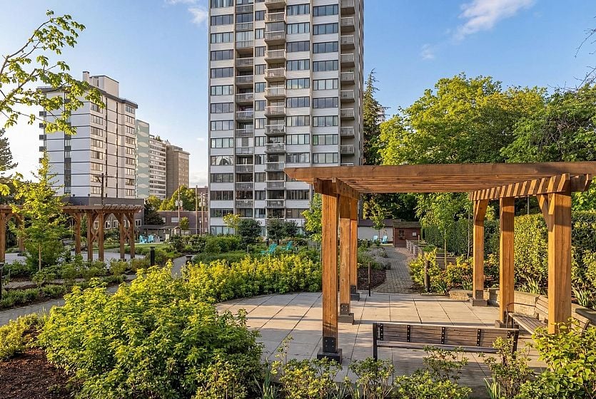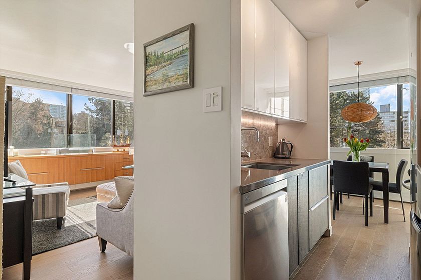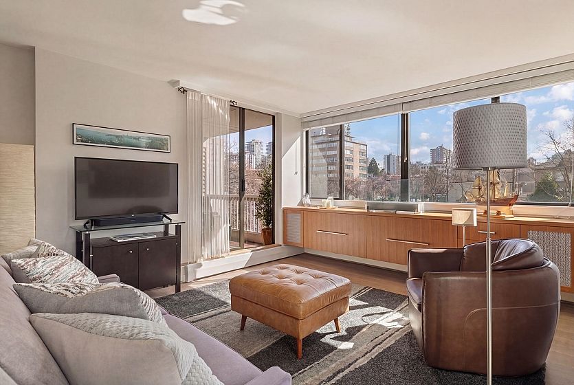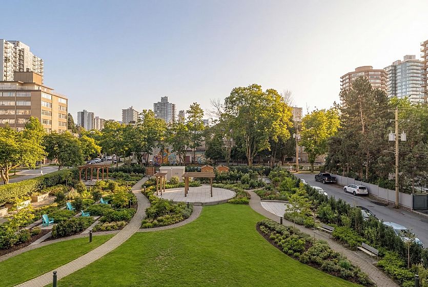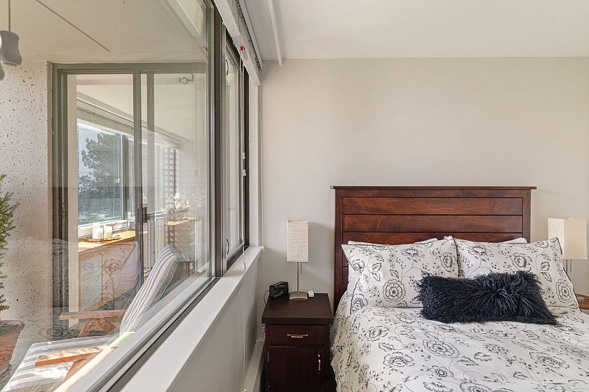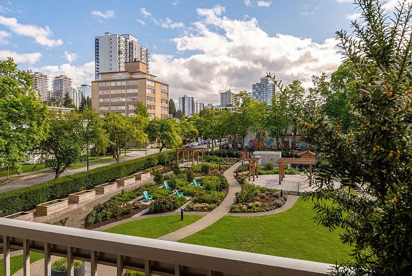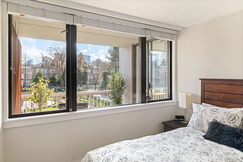 UNIT-Fully reno'd & well-maintained 2bed, 1bath corner home offering great privacy w/ no direct sight into the suite & plenty of natural light. Living area fts large windows & opens to a private balcony overlooking a peaceful garden creating a backyard-like feel. Primary bed offers peek-a-boo water view. One of the few units in the building w/ washer/dryer incl. BUILDING-pet-friendly & well-maintained w/ upgrades incl new windows, a modernized elevator, refreshed exterior & a recently redone parking membrane & garden. Rare find in a solid concrete building, this suite presents an amazing opportunity. LOCATION-Enjoy the best of the West End, just steps from shops, restaurants, cafés, Stanley Park, English Bay & all the amenities Davie & Denman have to offer. OH Sat April 11th, 2-3:30pm.