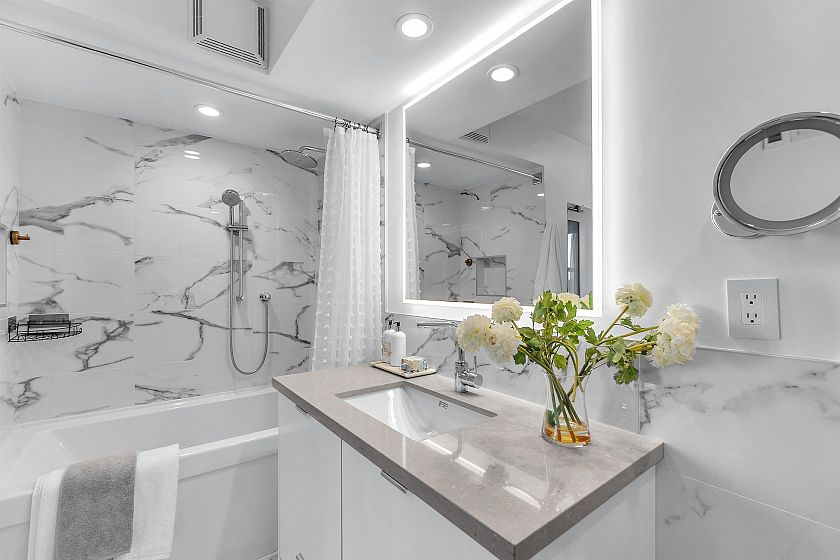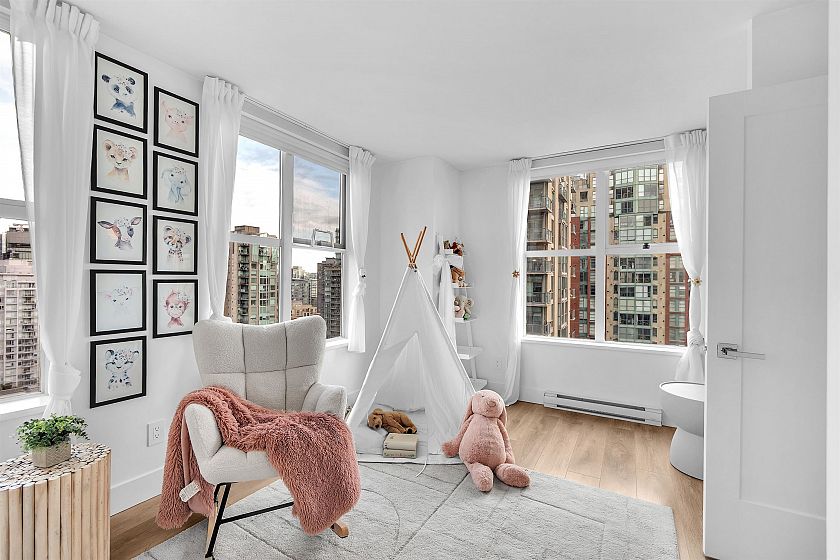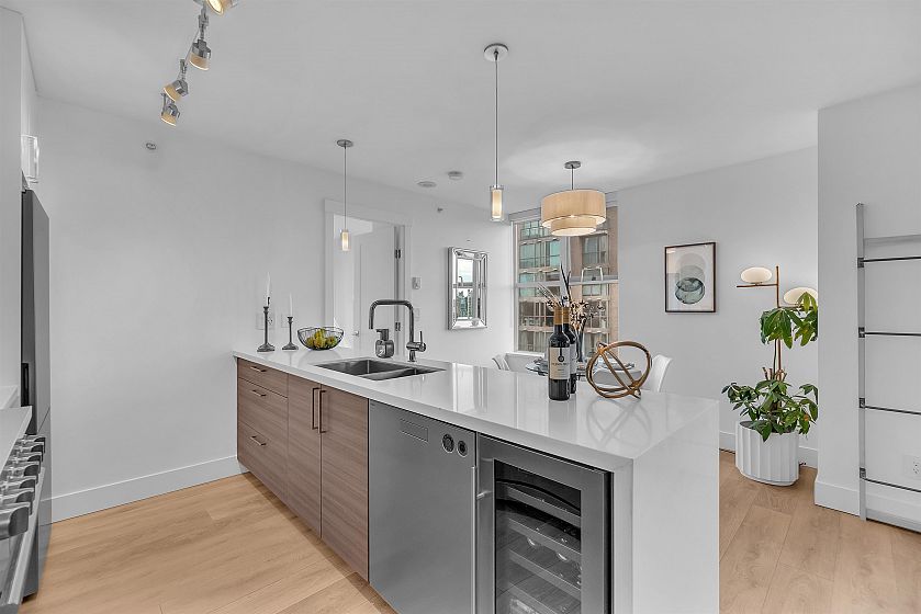 This amazing 2 bed + den, 2 bath corner home has been FULLY renovated with premium finishes throughout. Features a chef’s kitchen with custom cabinetry, Caesarstone waterfall island, marble backsplash, high-end appliances, 5-burner gas range, wine fridge, and Grohe fixtures. Bright open layout with bedrooms on opposite sides, spa-inspired marble bathrooms, and in-suite storage. Upgrades include new laminate flooring, designer lighting, roller shades, custom millwork, and gas fireplace. Comes with 2 side-by-side parking and storage. Amenities include gym, sauna, steam, guest suites & bike room. Pet-friendly, only 4 units per floor. Prime Yaletown location steps to SkyTrain, seawall, parks, shops & dining.