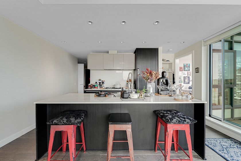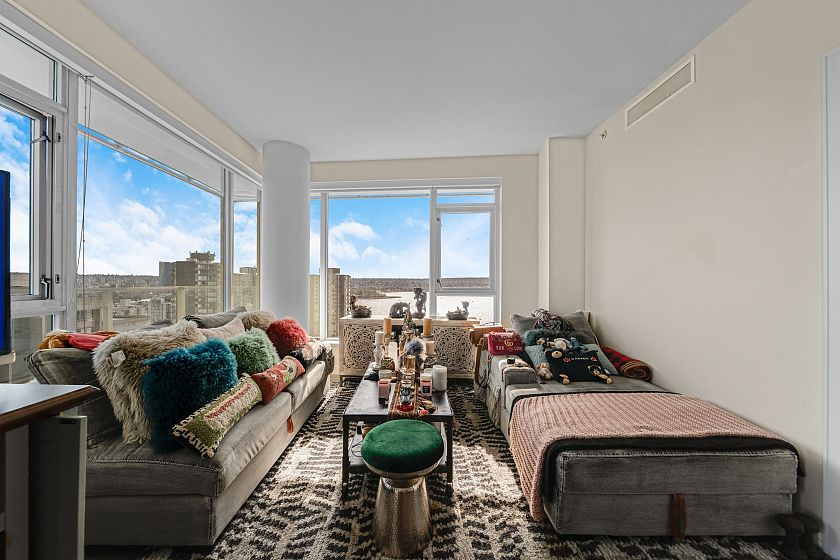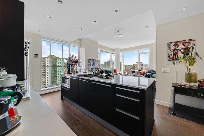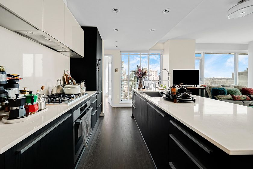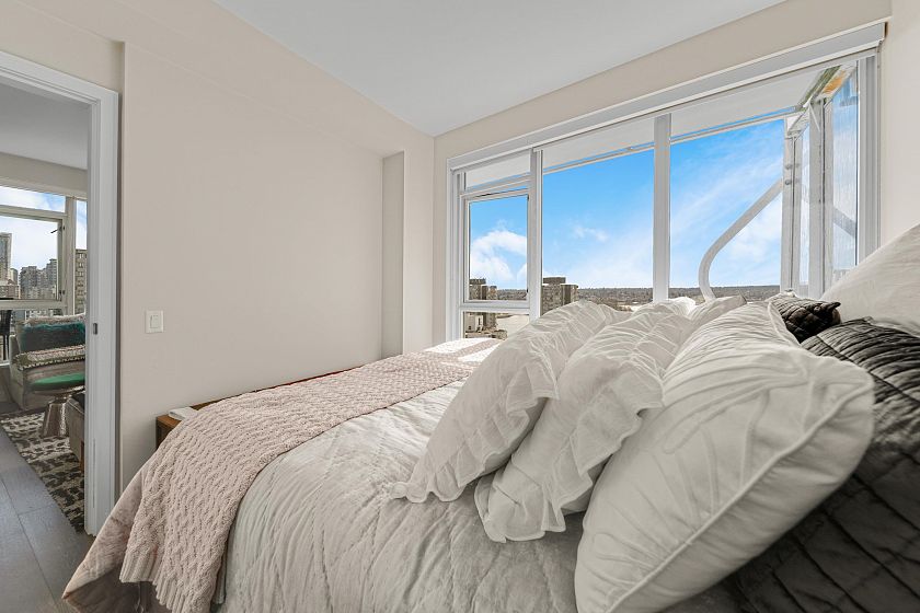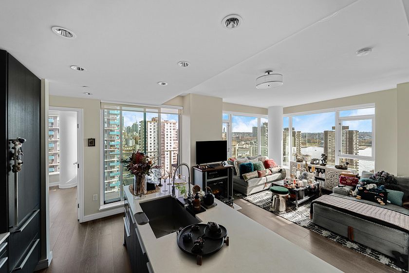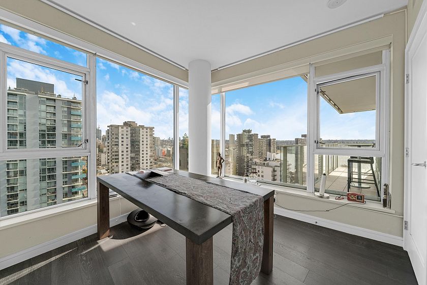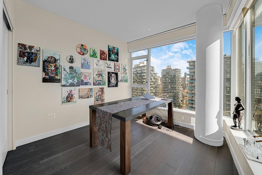 Experience the pinnacle of West End living at The Alexandra steps to English Bay. This stunning 18th-floor residence offers a sophisticated blend of modern luxury and breathtaking natural beauty. This meticulously maintained two-bedroom plus den home captures the essence of Vancouver's coastal lifestyle. Floor-to-ceiling windows flood the open-concept living area with natural light, framing spectacular unobstructed ocean views that transition into vibrant sunset vistas.A thoughtful floor plan featuring bedrooms on opposite sides of the unit for maximum privacy. The prime bedroom featuring a private, full ensuite bathroom. Gourmet Kitchen equipped with high-end integrated appliances, sleek cabinetry, and premium finishes. Hardwood flooring throughout and the comfort of heated toilets.