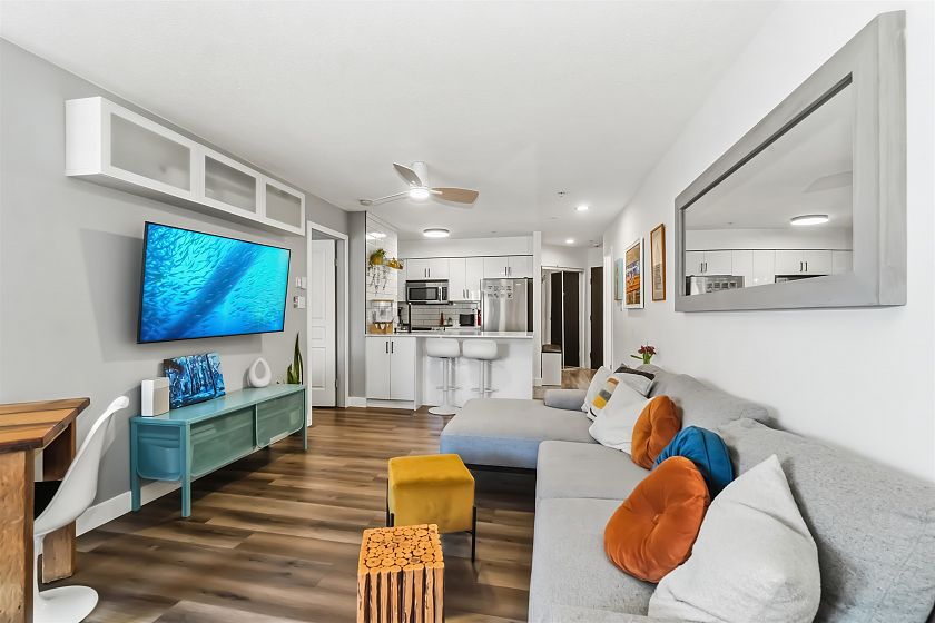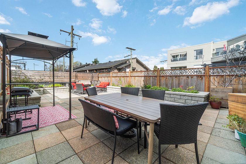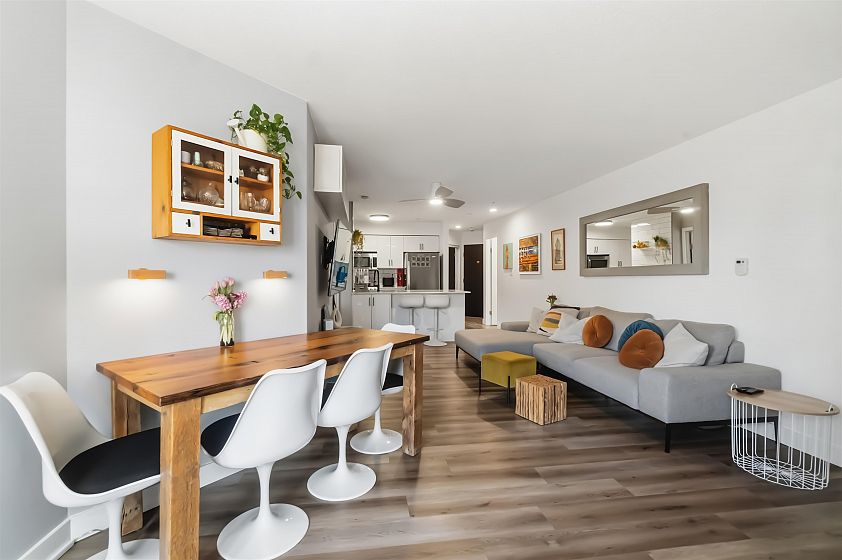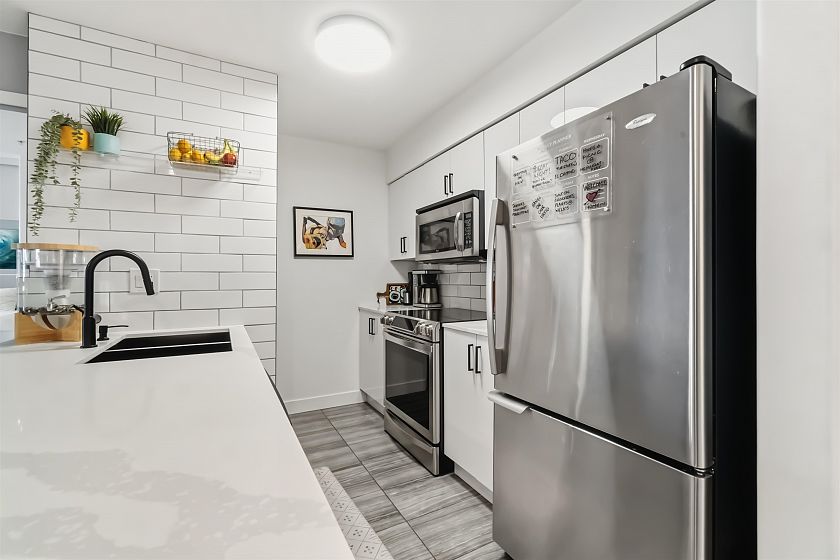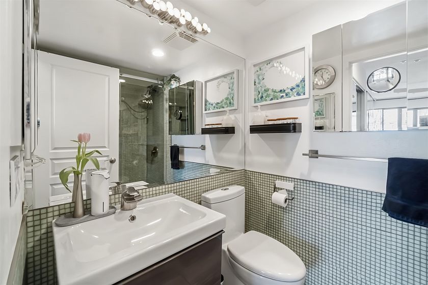 Extensively renovated quiet 2bed, 2bath home designed for modern family living in the heart of Mount Pleasant. The 2025 kitchen upgrade features quartz countertops, new cabinetry, induction stove, and stylish backsplash with updated fixtures. Enjoy new flooring, LED lighting, and smart Mysa thermostats throughout. Bathrooms have been beautifully updated, and the spacious primary bdrm offers exceptional closet space. Added comforts include ceiling fans, blackout curtains, a refreshed fireplace w/new tile surround, and a convenient in-suite washer/dryer. Step outside to an incredible 860+ sq ft west-facing private patio perfect for kids, entertaining or relaxing. Steps to parks, schools, cafés, boutique shops & Main St with easy transit access. Set in a well-maintained rainscreened building.