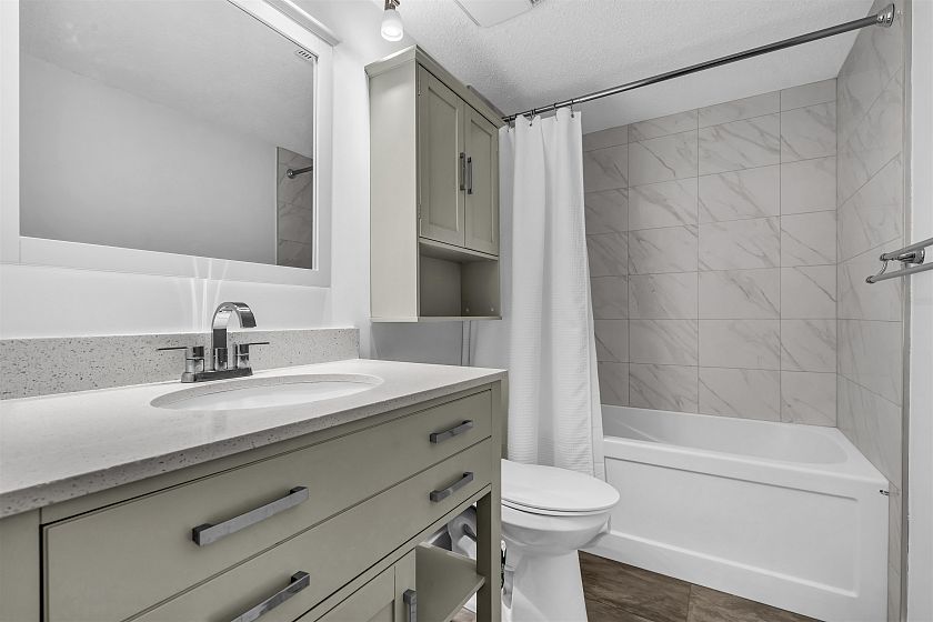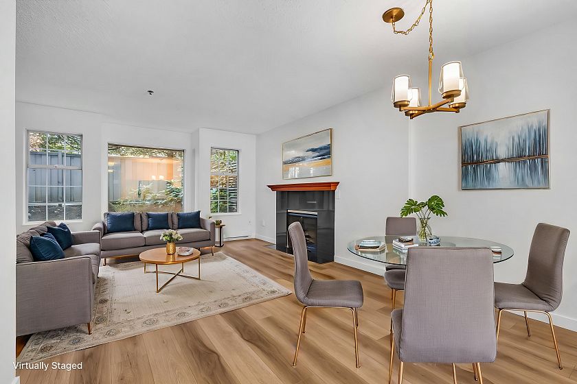 Well-designed 2 bed, 2 bath home with a standout 451 sq ft outdoor space, including a covered area for year-round use. The kitchen features quartz countertops, a modern backsplash, and stainless steel appliances, with plenty of storage throughout. Both bathrooms have been tastefully updated, and laminate flooring runs seamlessly throughout the home. The living area is anchored by a gas fireplace and large windows, offering a comfortable and functional layout. Includes parking and is conveniently located within walking distance to parks, shopping, recreation, and everyday amenities. Pets allowed - max weight 25lbs. Open Sunday, April 26th from 1-2pm.