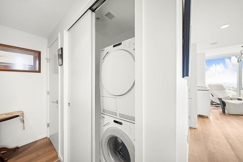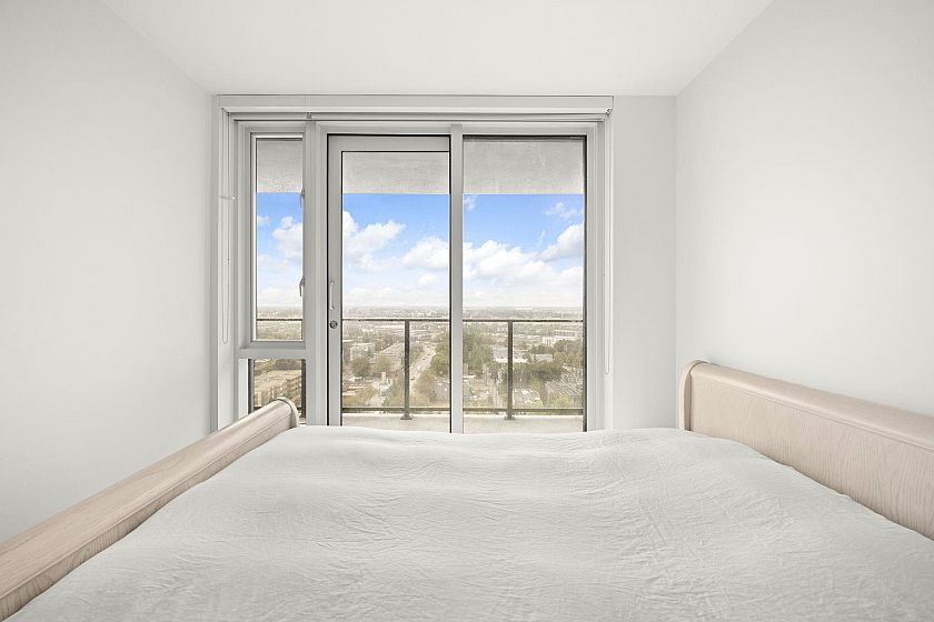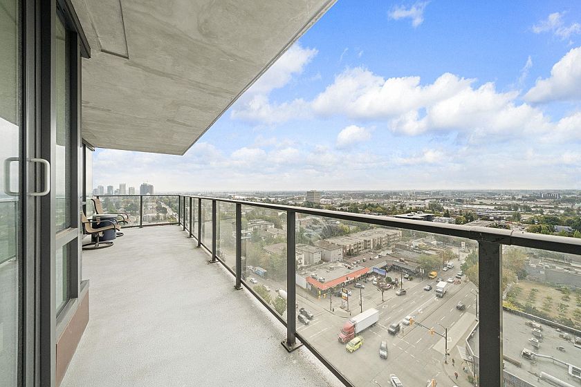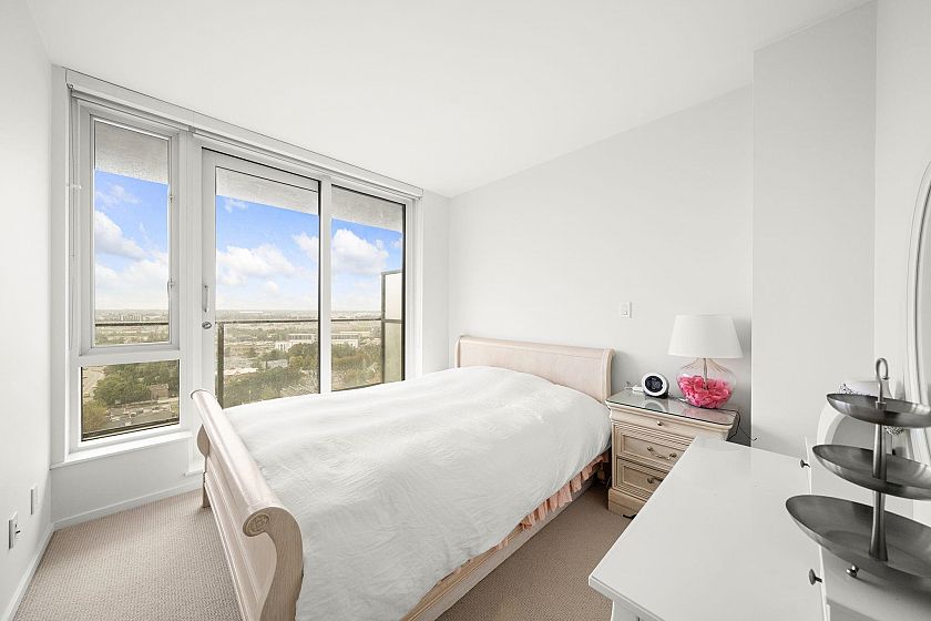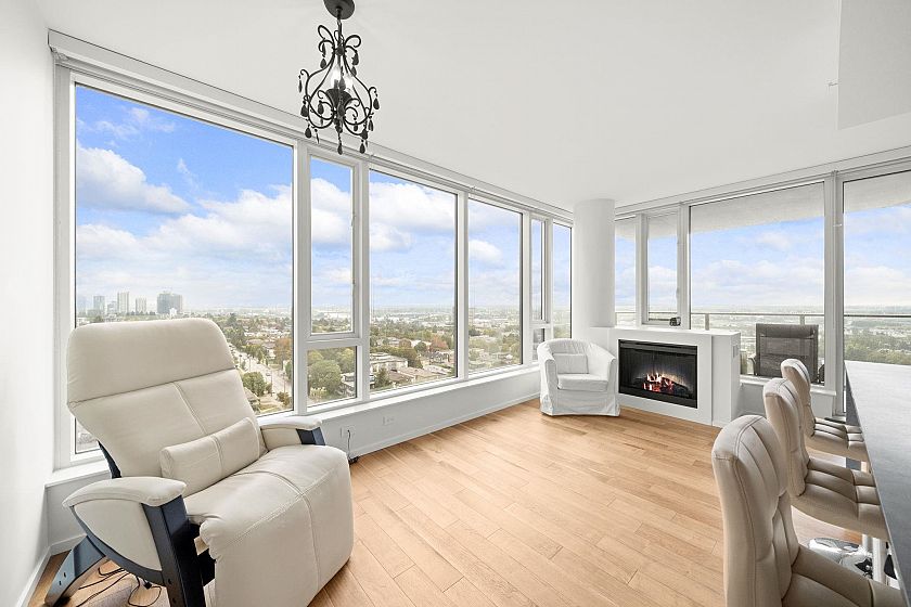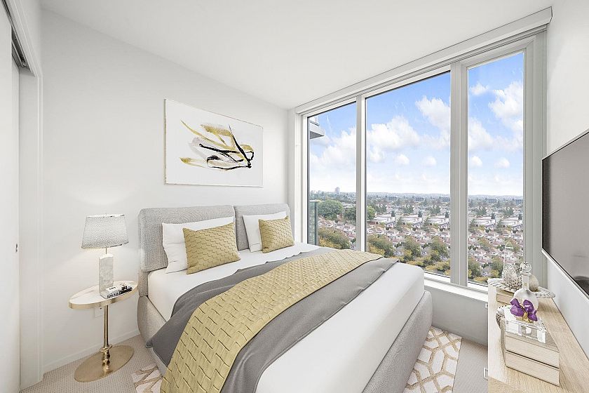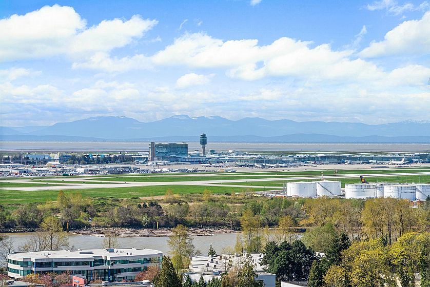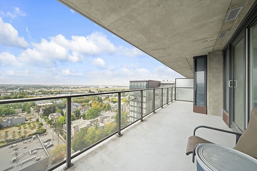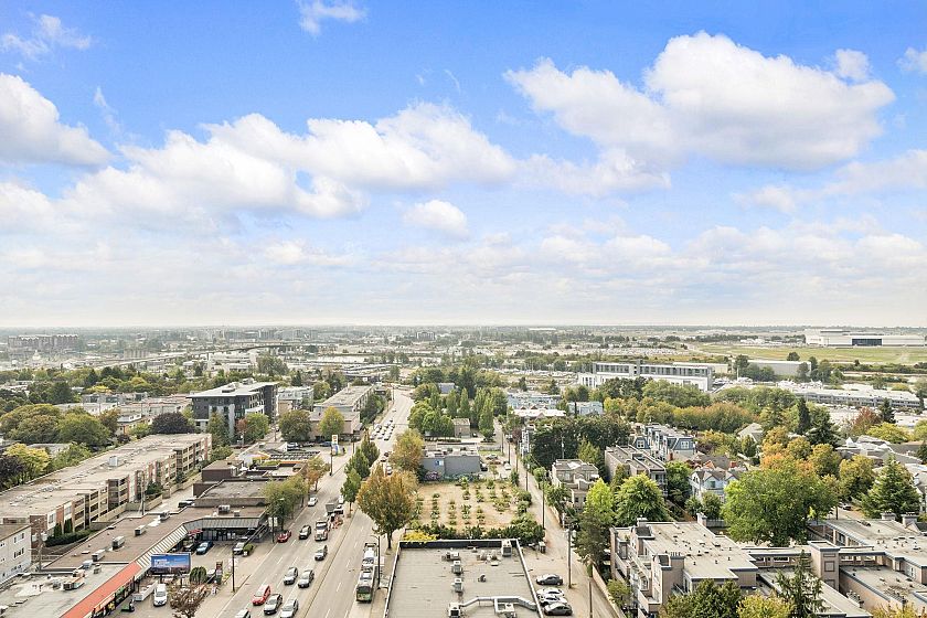 Welcome to “GRANVILLE AT 70TH”, this corner-unit 2-bed, 2-bath home offers nearly 915sqft of interior living space with incredible south-east 270-degree panoramic views of the mountains, city and water. Floor-to-ceiling windows for maximum natural light, while air conditioning, hardwood flooring, Nuheat bathroom floors, and premium kitchen appliances. Residents enjoy 24-hour concierge service along with impressive amenities: rooftop gardens, library, lounge/study areas, gym, steam room, and sauna. Conveniently located above Safeway and just steps to shops, banks, restaurants, and transit, this home places everyday essentials right at your door. Families will appreciate being a short drive to Dr. R.E. McKechnie Elementary and Magee.