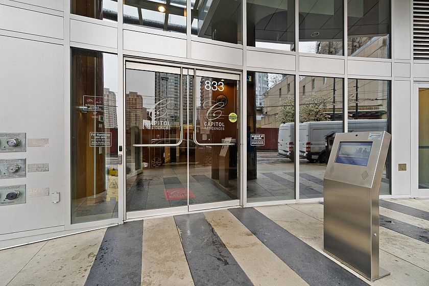 Perched on the 31st floor at Capitol Residences, this stunning 2 bed+den home showcases sweeping city views through expansive windows, filling the space with natural light. The open layout features a modern kitchen with built-in oven and gas range, flowing into a bright living area with balcony access. The primary bedroom offers its own balcony, walk-in closet, and a spa-like ensuite with double vanity, separate shower, and soaker tub. A bright den with windows is perfect for a home office, plus a separate flex space ideal for storage. Includes parking. Amenities include a gym and lounge. Steps to the energy of downtown—There is air conditioning in the unit and 24-hour concierge service. Floors 30 and below do not have air conditioning. Open House Sunday 11 AM to 1 PM.