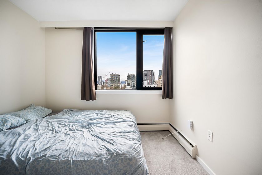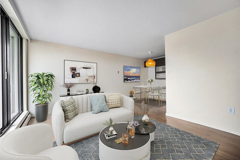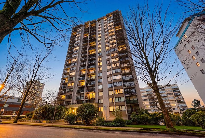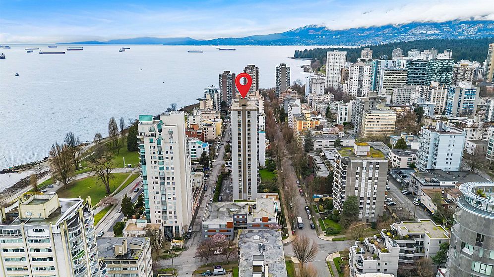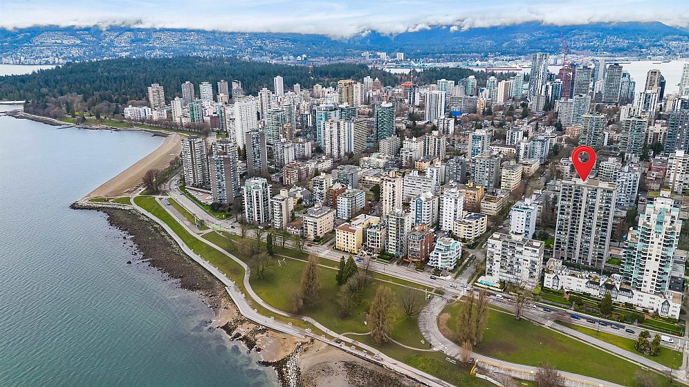 Just steps from Sunset Beach, the seawall, & vibrant Davie Street, this bright & spacious 2 bed, 1.5 bath home is ideally located in the heart of the West End and offers beautiful city & mountain views. The thoughtfully designed layout features a 49sf balcony. Renovated in 2009 by previous owners, the home includes updates to the entryway, kitchen, & bathrooms, along with engineered hardwood flooring throughout the main living areas. Westsea Towers completed a major restoration in 2018, including new windows & doors, exterior concrete refinishing & paint, balcony membrane & railing replacement, as well as roof & parkade membrane upgrades. Amenities include an outdoor pool, secure underground parking, visitor parking, bike room, shared laundry and storage locker.