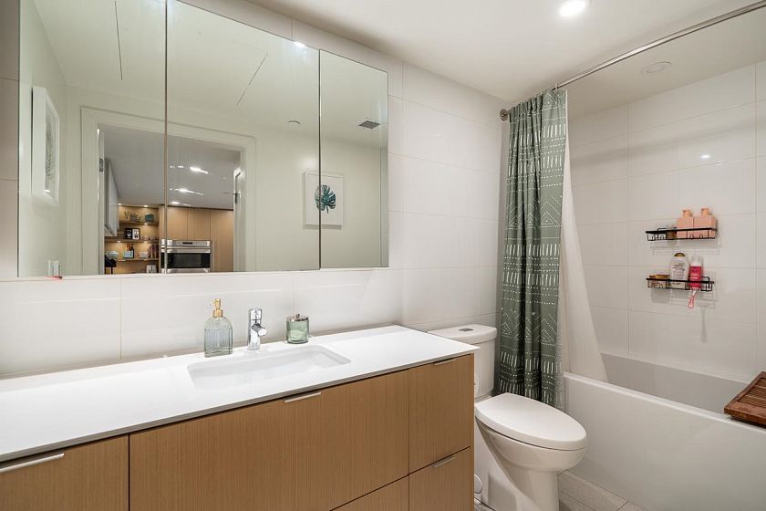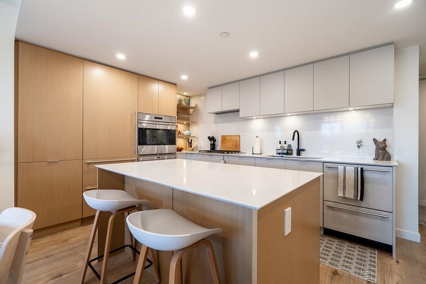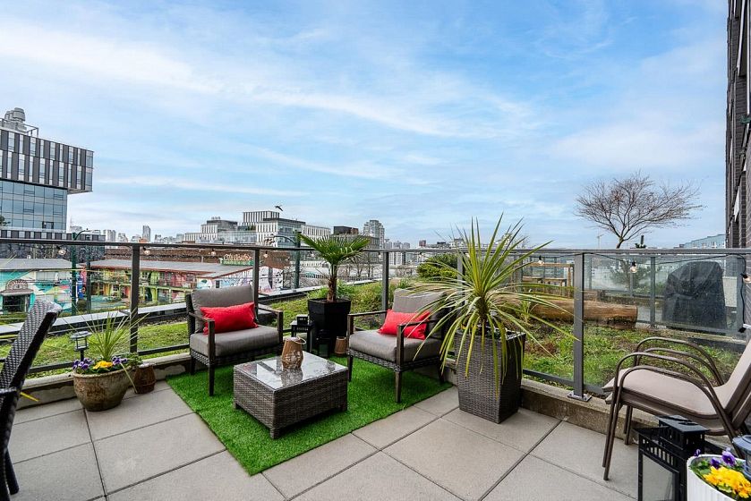 Welcome to Elenore on Fifth, Chard Development's LEED Gold masterpiece in the heart of Mount Pleasant. This exceptional west-facing 2 bed/2 bath is everything a buyer dreams of. Inside, no detail was overlooked: Sub-Zero fridge & wine fridge, Wolf gas range, oven & microwave, Fisher & Paykel d/w, Benson cabinetry with pull-out pantry, quartz counters & wide-plank floors. Primary bed features a rain shower ensuite & double closets. 2nd bed offers a generous walk-in. Heated bath floors, A/C & in-suite storage room complete the picture. Then step outside, 229 sq ft of private west-facing terrace awaits. Sunsets, North Shore mountains & glittering city lights, every single evening. The outdoor space Vancouver buyers spend years searching for. 1 parking + 1 locker. Open House April 18th 1-3