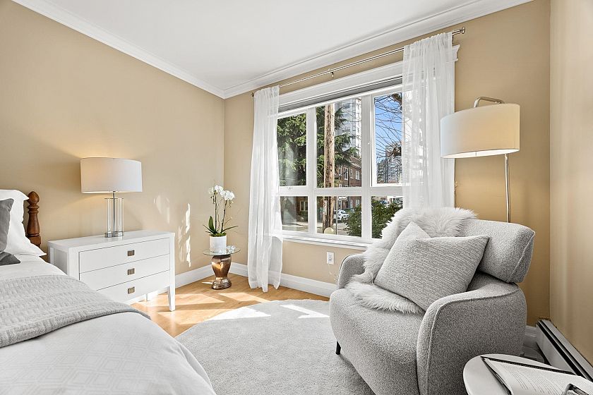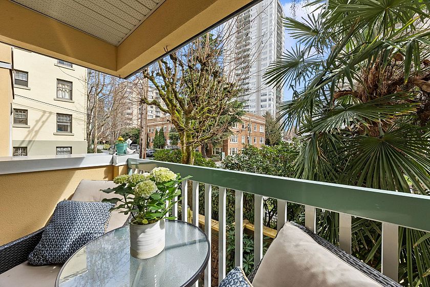 Gilford Court, a coveted address West of Denman. This fully renovated 2-bedroom, 1-bathroom corner home offers a sun-drenched SE exposure, an open kitchen/dining/living area, and an extra-large primary bedroom that fits house-sized furniture. The second bedroom is ideal for guests or a dedicated home office. Enjoy in-suite laundry, generous storage, and a covered balcony perfect for relaxing with corridor views of English Bay and the iconic Sylvia Hotel. The building is impeccably maintained, with low turnover, and includes secure parking and a storage locker. Amenities: bike room, elevator, gym, social lounge and sauna. Step outside to shops, restaurants, and cafes, and to English Bay, Stanley Park, and Denman/Davie Street. OPEN: Fri Apr 10th 10-Noon | Sat Apr 11th 2-4.