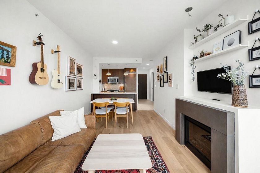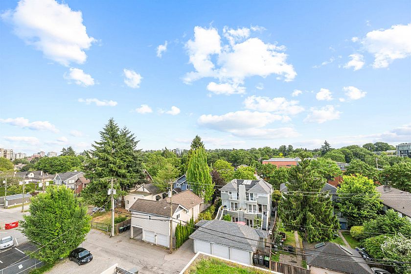 Southeast-facing sub-penthouse at Pulse by Bastion Development in the heart of Kitsilano. Quietly positioned with expansive city and mountain views, just steps to shops, amenities, and the future Arbutus & Broadway SkyTrain station. Recently refreshed with engineered hardwood floors, fresh paint, updated bath hardware, new lighting, and roller blinds. Open living and dining area with electric fireplace flows into a kitchen with Caesarstone counters, Bosch gas range, microwave, and Miele dishwasher. Radiant in-floor heating in bathrooms. Primary suite with walk-in closet and ensuite, second bedroom with over-height ceilings, plus flex space with new pantry. Two parking and storage included. Exceptional West Side location with restaurants, shopping and more.
