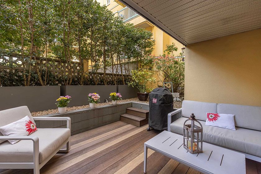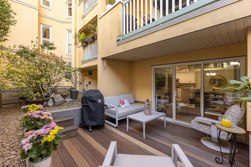 Welcome to Gilford Place, just one short block from English Bay and the iconic seawall. This ground-level 2 bed, 2 bath home offers 922 sq ft of updated living with in-suite laundry, hot-water baseboard heating, and a cozy gas fireplace. Enjoy an open-concept kitchen, living, and dining area with separated bedrooms for added privacy. The true highlight is a 566 sq ft private outdoor oasis featuring a sunken patio and raised garden. Includes 2 secure parking stalls and 1 storage locker in a quiet 44-unit building with gym, sauna, games lounge, and shared laundry—steps to the beach and vibrant West End living. Contact me today for your private showing!