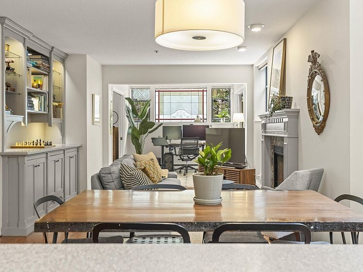 A heritage-inspired one-level townhome in the sought-after Mount Pleasant West pocket. This modern build 2 bed/bath layout is ideal for families or downsizers, featuring both a living room and separate family room—great for a play space or home office. The ivy-lined garden provides the perfect vignette for gatherings, while two sets of French doors with diamond-pane glass open seamlessly to the patio. The eat-in kitchen features new appliances and is complemented by a dedicated dining area with a sunlit bay window nook. The area’s walkability is unrivalled—located between Main and Cambie villages, it is a local's paradise and just steps to the Canada Line and Broadway Line, coveted Simon Fraser Elementary & Mt Pleasant Park. Open House Thursday, April 9th 6-7:30 Sat/Sun 2-4pm