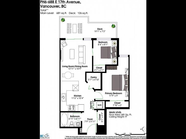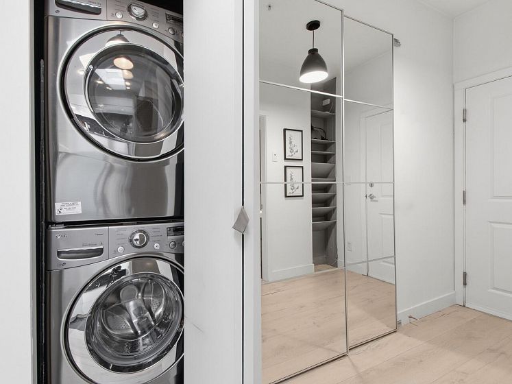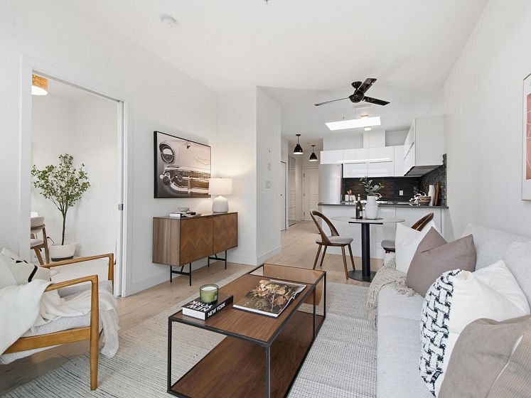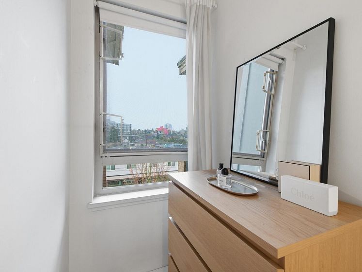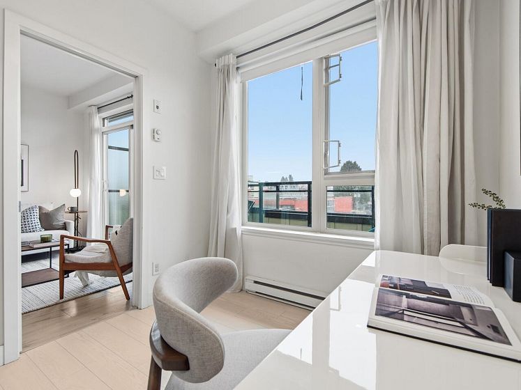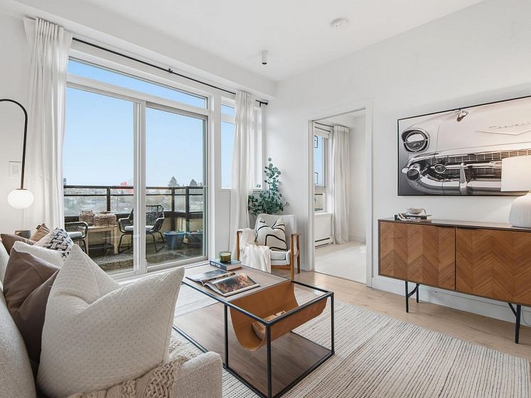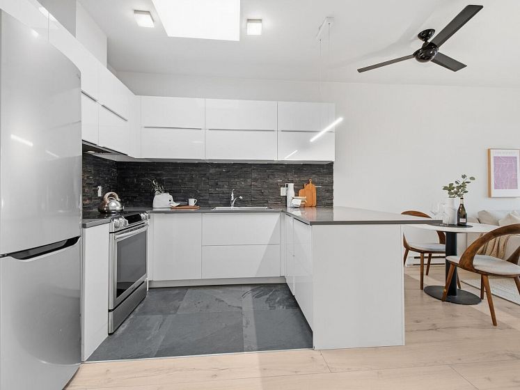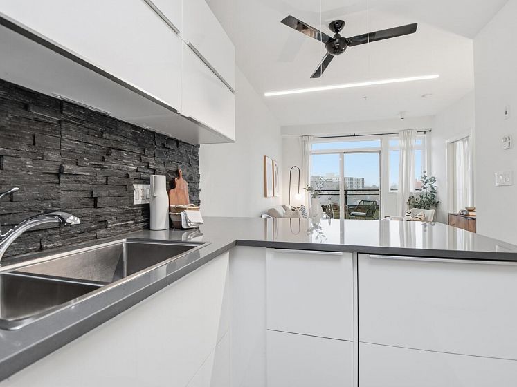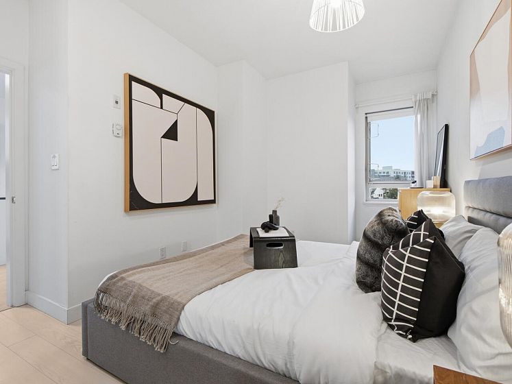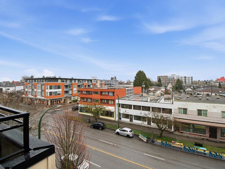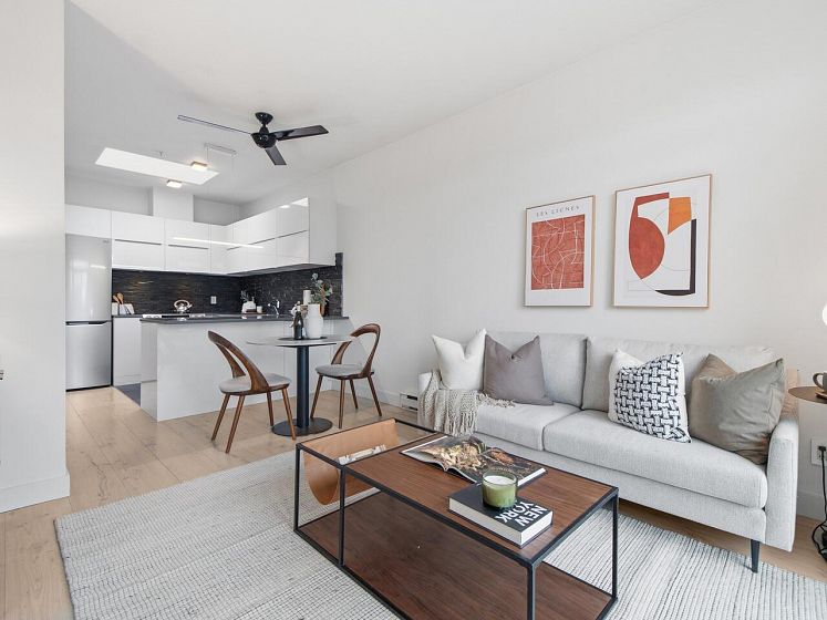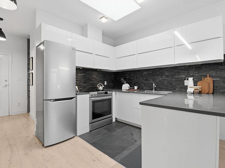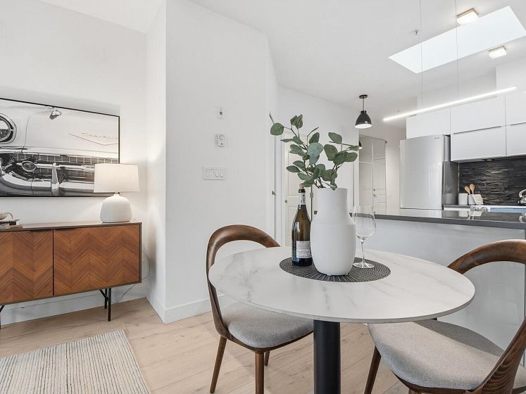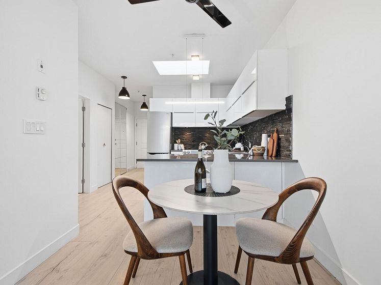 Welcome to the Mondella - experience the best of Fraserhood with this move in ready, top-floor penthouse home. Bathed in morning light from your east-facing balcony, this renovated home feels incredibly airy with 9' ceilings and a bright skylight. The layout is exceptionally functional with no wasted space - feeling larger than its 681 sq ft - it offers a spacious kitchen, two generous bedrooms (primary fits a king-sized bed) plus a bonus pantry/insuite storage area. With a large balcony, there's plenty of room for growing veggies, BBQ's or lounging. Excellent value in a great location - the heart of Vancouver’s trendiest culinary scene, you are steps from world-class coffee at Slo or Prado, and Michelin-recognized dining at Masayoshi, Bravo, and Chez Céline.