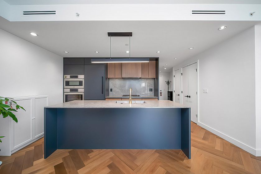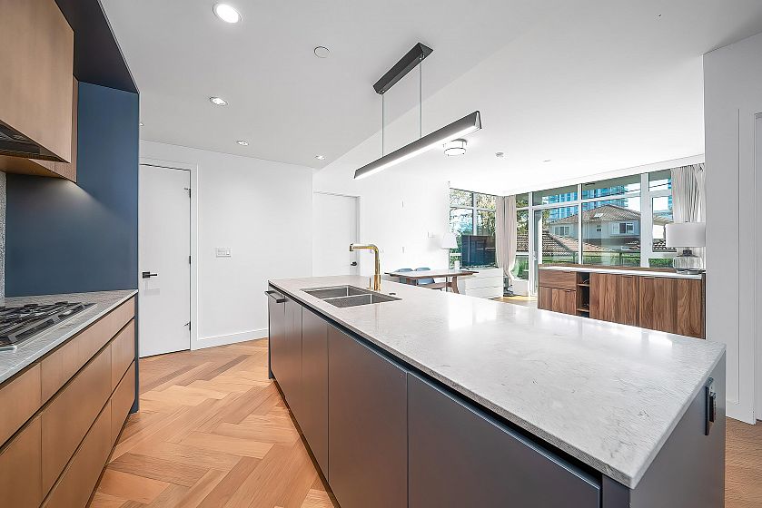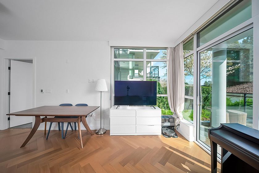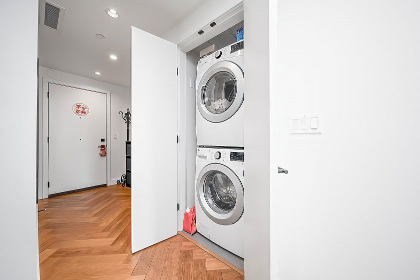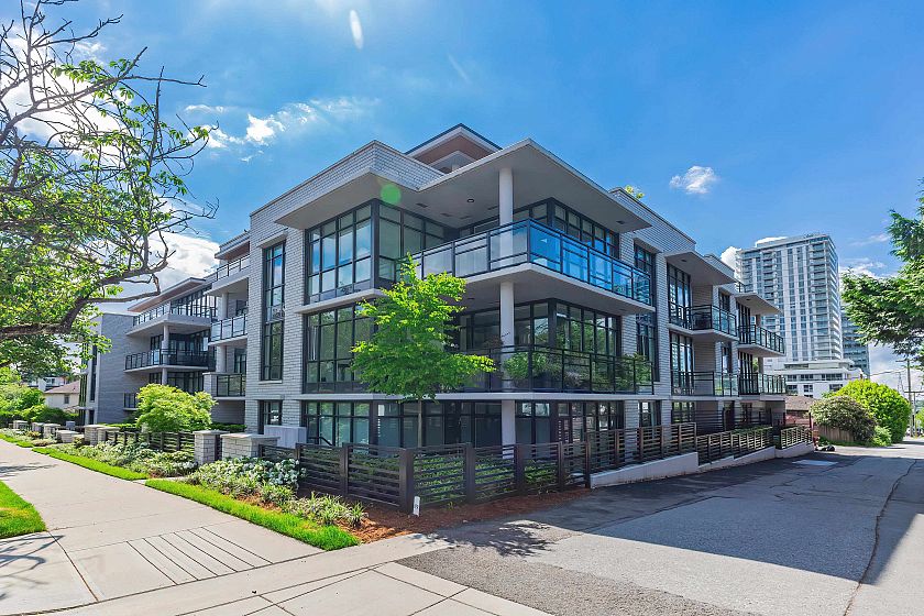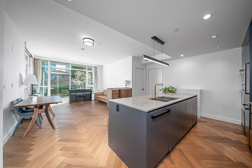 Reside by famous developer Marcon with only 33 concrete homes-low density complex inside a quiet neighbourhood. This 3-storey, townhouse taste concrete apartment building offers attractive modern architecture, hardwood flooring, air conditioning, built in Bosch SS appliances. South Facing bright suite with huge open floor plan layout and spacious, landscaped patio. High efficiency heating and air conditioning system let you stay away from humid summer. One parking stall and one condo-size locker. Step to Marine Gateway shopping mall, CanadaLine Skytrain and bus stops. Catchment:J.W. Sexsmith Elementary and Sir Winston Churchill Secondary. Open house from 2-4 pm on Apr. 25 (Sat.)
