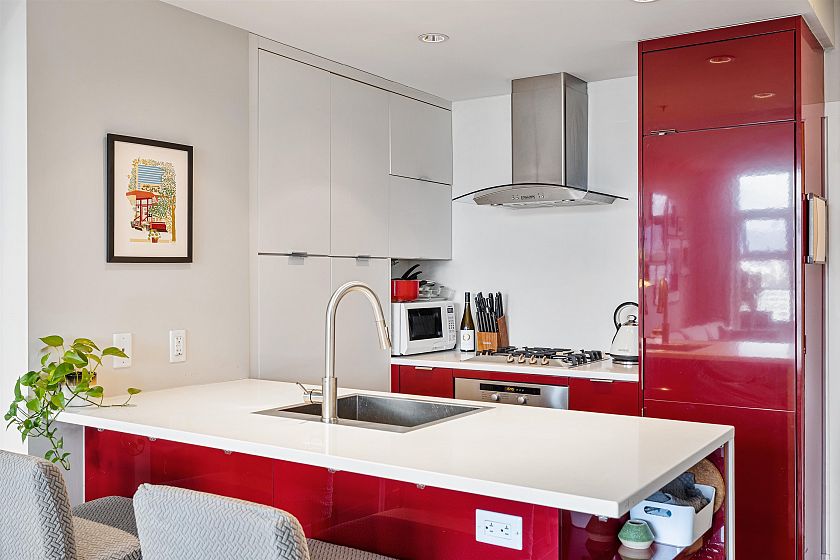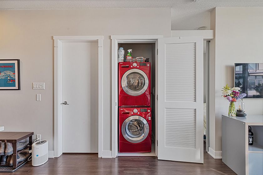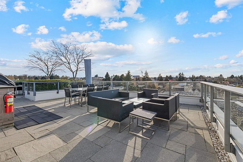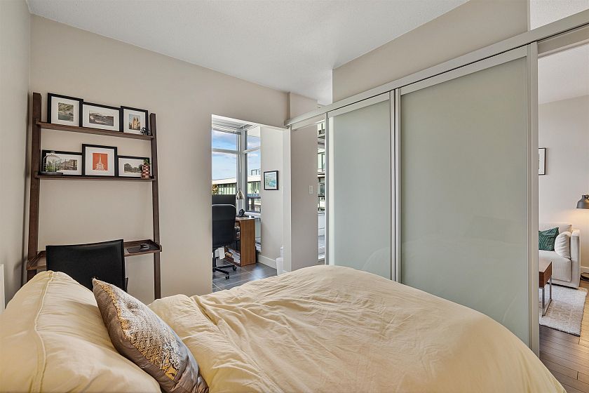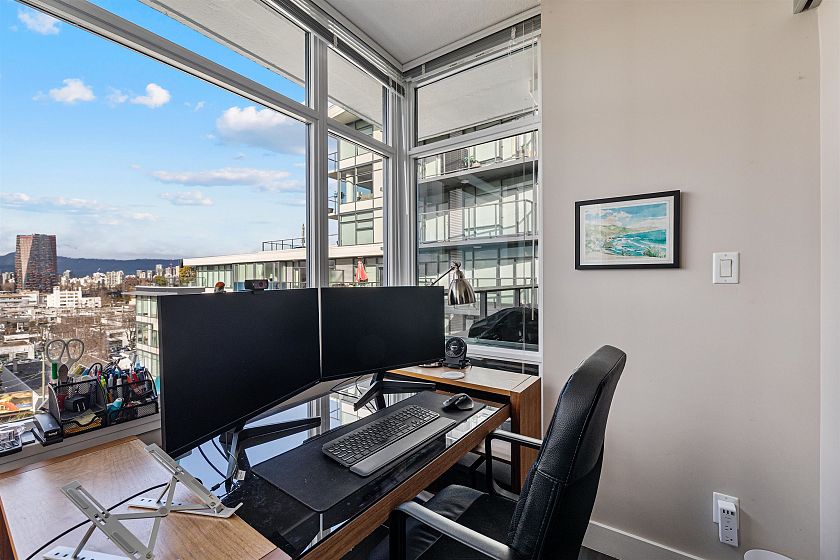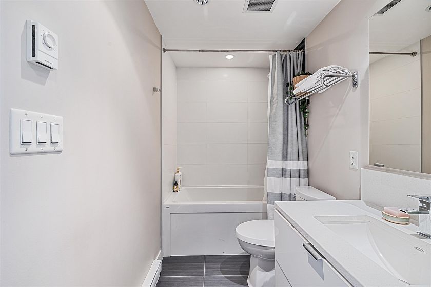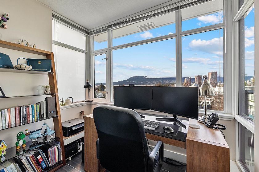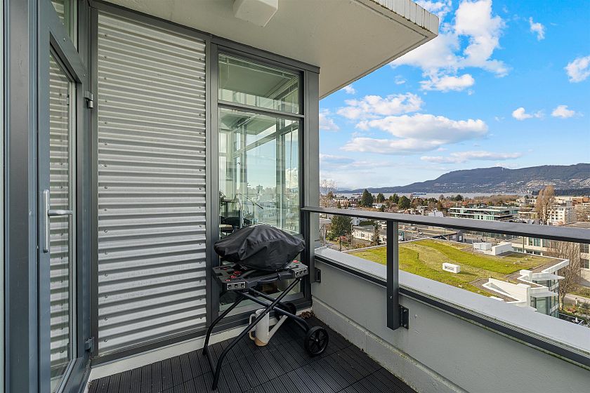 Highly sought after 2 bedroom plus den home at Kits360, ideally situated in the Kitsilano/Fairview neighbourhood. This 762 sqft residence offers an efficient layout with separated bedrooms, providing flexibility and privacy. The kitchen features modern cabinetry, quartz countertops, and stainless steel appliances. The standout feature is its north-facing exposure with expansive views of Downtown, the North Shore Mountains, and the ocean. Large windows bring in natural light while framing a bright, open outlook. The balcony offers an ideal vantage point to enjoy the scenery. Amenities include concierge service, fitness centre, and rooftop terrace. Conveniently located near transit, shops, cafés, Granville Island, and the Seawall. Includes 2 parking stalls and 1 storage locker.