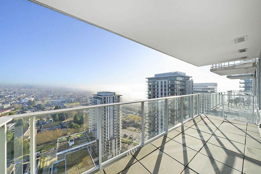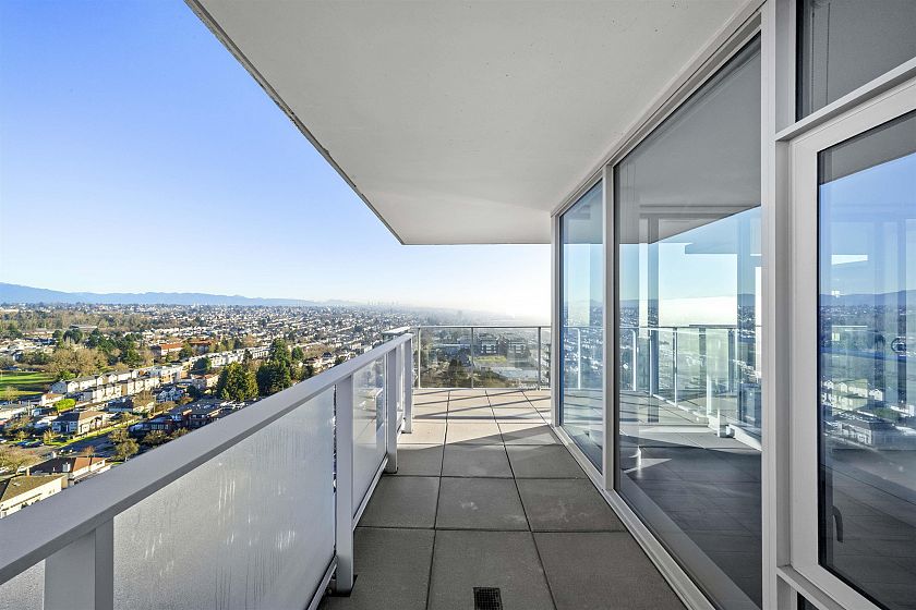 One of a kind sub-penthouse with 24/7 concierge! Breathtaking and unobstructed views of the mountains with floor-to-ceiling windows and a massive wraparound balcony. This 2bed/2bath home features an open concept floor plan with a den, huge walk-in master closet, and brand new flooring throughout. Beautiful, integrated Liebherr refrigerator, Blomberg appliances, and Caesarstone countertops. 4 min walk to Canada Line and Marine Gateway - South Vancouver’s urban town centre with groceries, drugstore, fitness, banking, restaurants, cafes, movies and more! This location offers exceptional convenience at the gateway between Vancouver and Richmond.