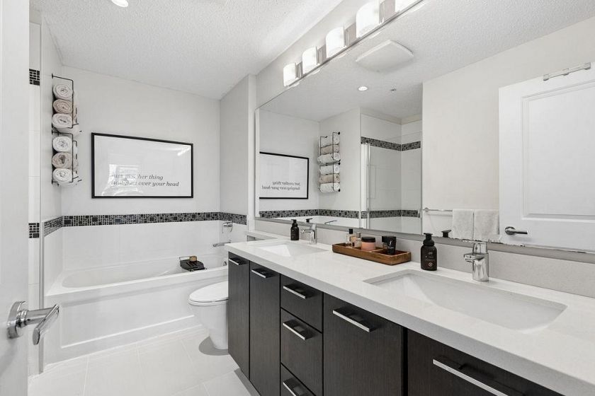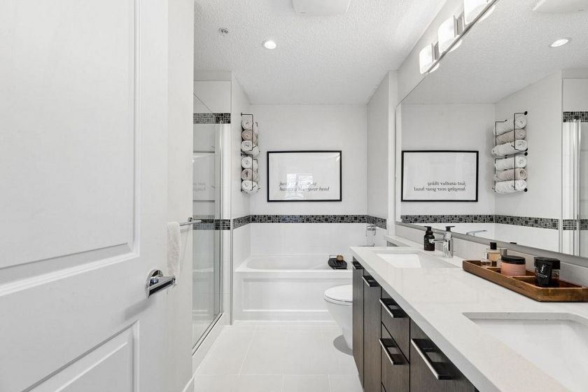Welcome to one of North Vancouver’s finest boutique residences by Polygon. This beautifully appointed corner home offers 2 bedrooms and 2 bathrooms, showcasing stunning views of the North Shore mountains. Enjoy year-round outdoor living on the covered balcony, seamlessly connected to an expansive open-concept living complete with 9’ ceilings, radiant in-floor heating, & an electric fireplace. The gourmet kitchen features stainless steel appliances, a dedicated eating area, and direct access to the balcony. Thoughtfully designed with opposing bedrooms for added privacy, the home includes a well-appointed 3-piece bathroom, while the spacious primary retreat offers a walk-in closet, blackout blinds, and a luxurious 5-piece ensuite. 1 Parking included, book your private showing!