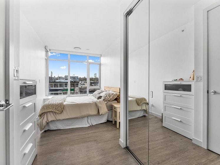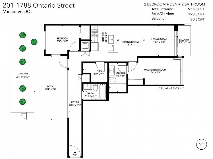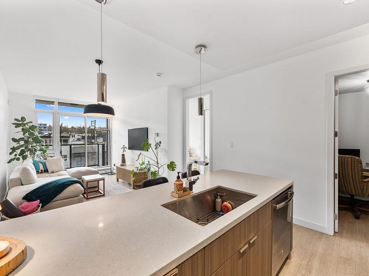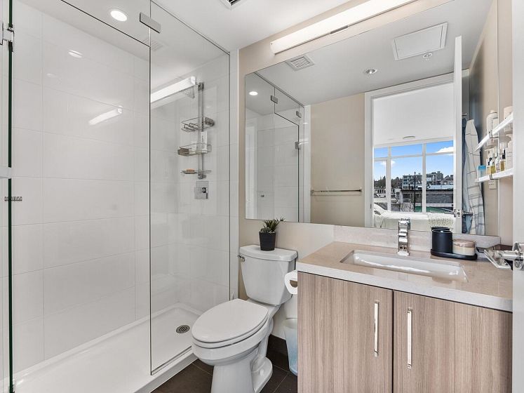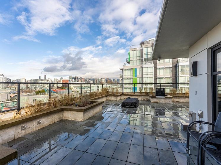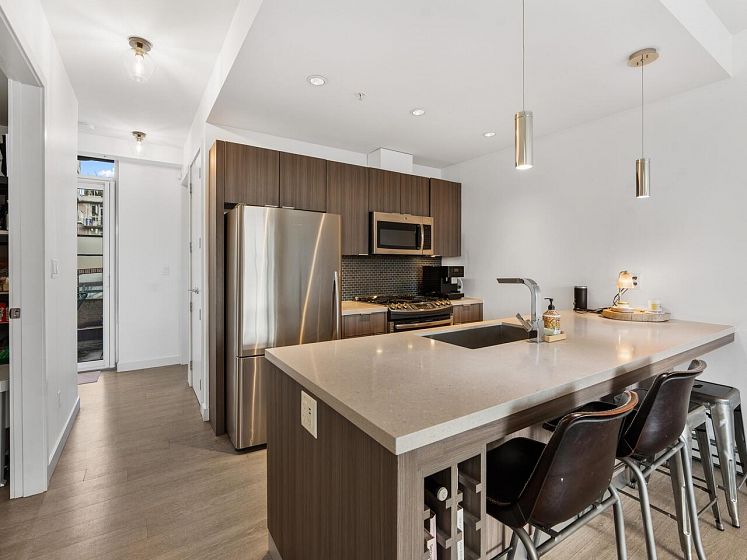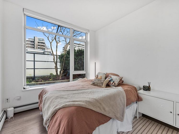 Book your private showing today! Stunning 2 bed + den, 2 bath corner 2nd floor garden suite in Olympic Village’s Proximity. Bright & airy with floor-to-ceiling windows & 9’ ceilings. Bedrooms are thoughtfully separated for privacy, a spacious den ideal for a home office/pantry/in suite storage. Gourmet kitchen features Caesarstone countertops, full-size stainless steel appliances, gas range, breakfast bar seating & lots of counter space. Enjoy an incredible 393 sq ft private patio/garden oasis surrounded by lush greenery w/BBQ gas hookup, plus a sunny south-facing balcony. Includes 1 oversized parking stall & 1 double sized storage locker. Steps to Science World, False Creek, Main Street shops, dining, and transit. Pet & rental friendly, rooftop common patio & gym in the building.