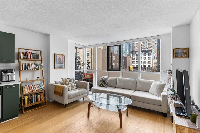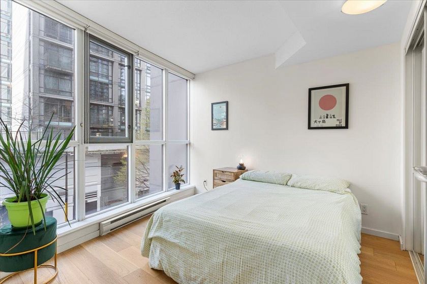 Incredible value for this fabulous 2 bedroom, 2 bathroom 971 square foot home at sought after "Brava". Thoughtfully laid out with separated bedrooms for added privacy, this bright & airy suite features an open concept floor plan that is perfect for entertaining, complete with separate dining area. The recent renovation includes new engineered wide-plank oak hardwood flooring and new quartz countertops. Brava amenities include a large outdoor lap pool, hot tub, sundeck, expansive gym overlooking Emery Barnes Park, steam room, sauna, meeting rooms, party room, lounge & guest suites. Conveniently located, within minutes from the Seawall, all the chic restaurants and coffee shops of Yaletown & all public transport. Book your private showing today ! 1 parking/1storage.